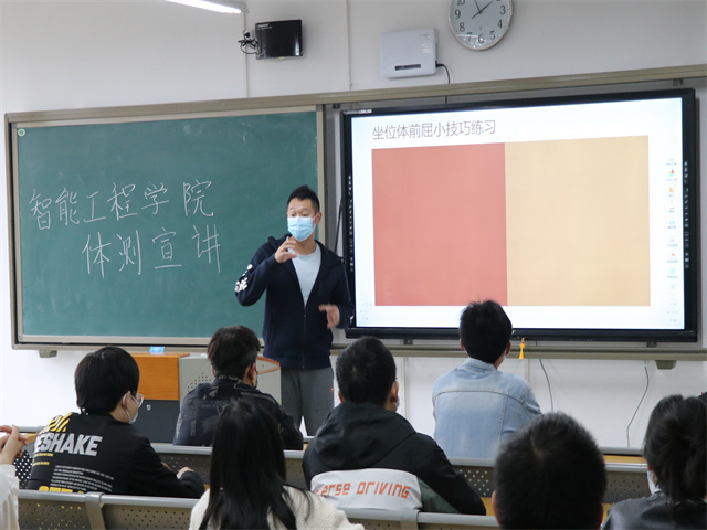 11月5日14:00,智能工程学院体测宣讲团在竹逸A202教室顺利开启新学年第一讲。此次宣讲邀请到了竞技体育中心黄静教练,为2021级新生讲解体测的重要性以及体测技巧和日常训练方法。