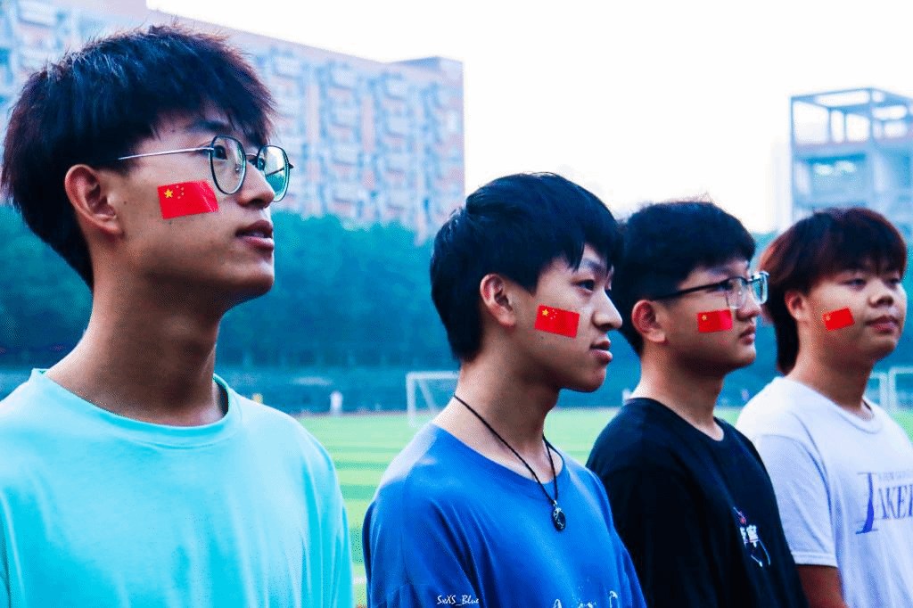 一列列整齐的队伍富有节奏地奔跑在校园的跑道上,一个个学生精神抖擞,踏着一致的步伐前行,一声声响亮的祝福久久回荡……一面面鲜艳的国旗在他们的脸庞闪闪发光,这是他们对祖国最直接最真挚的祝福。