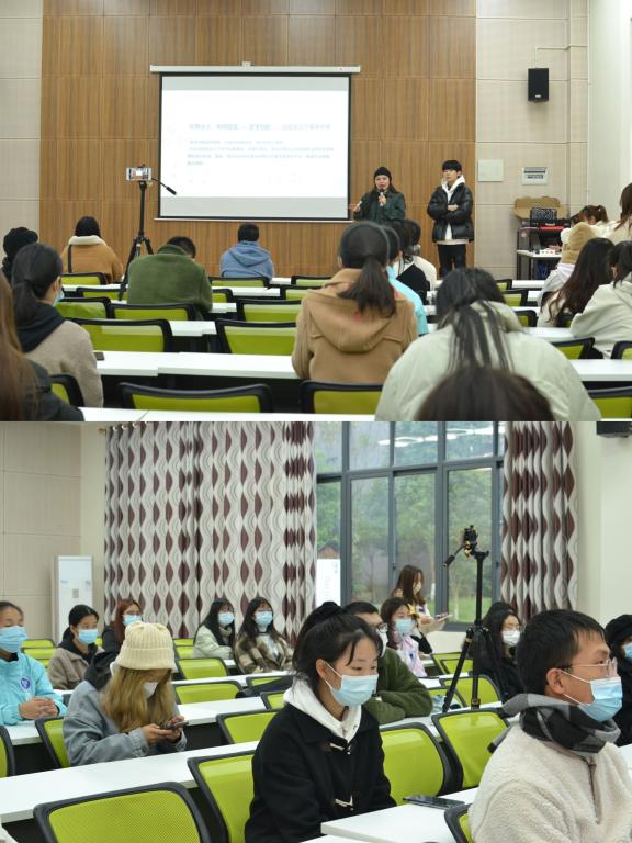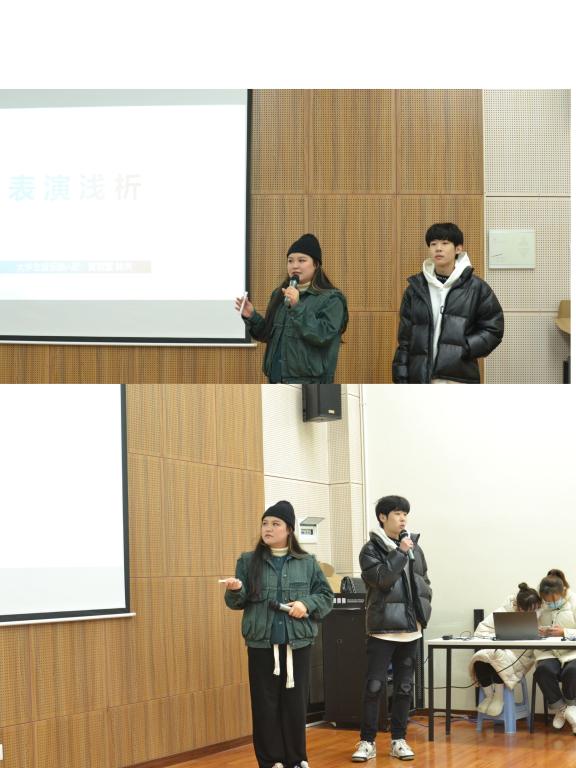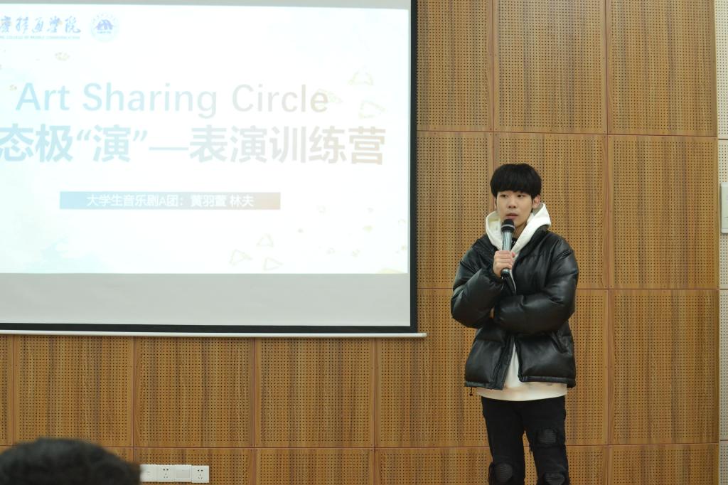2021年11月16日12点30分,“Art Sharing Circle”第三期尽态极“演”表演训练因疫情防控需要在天渠111报告厅与线上同步开展。此次训练营邀请到爱莲书院学生自治委员会执行主席、大学生音乐剧A团成员黄羽萱学姐以及大学生音乐剧A团表演、舞蹈教学助理林夫学长向大家分享和交流表演的相关知识。