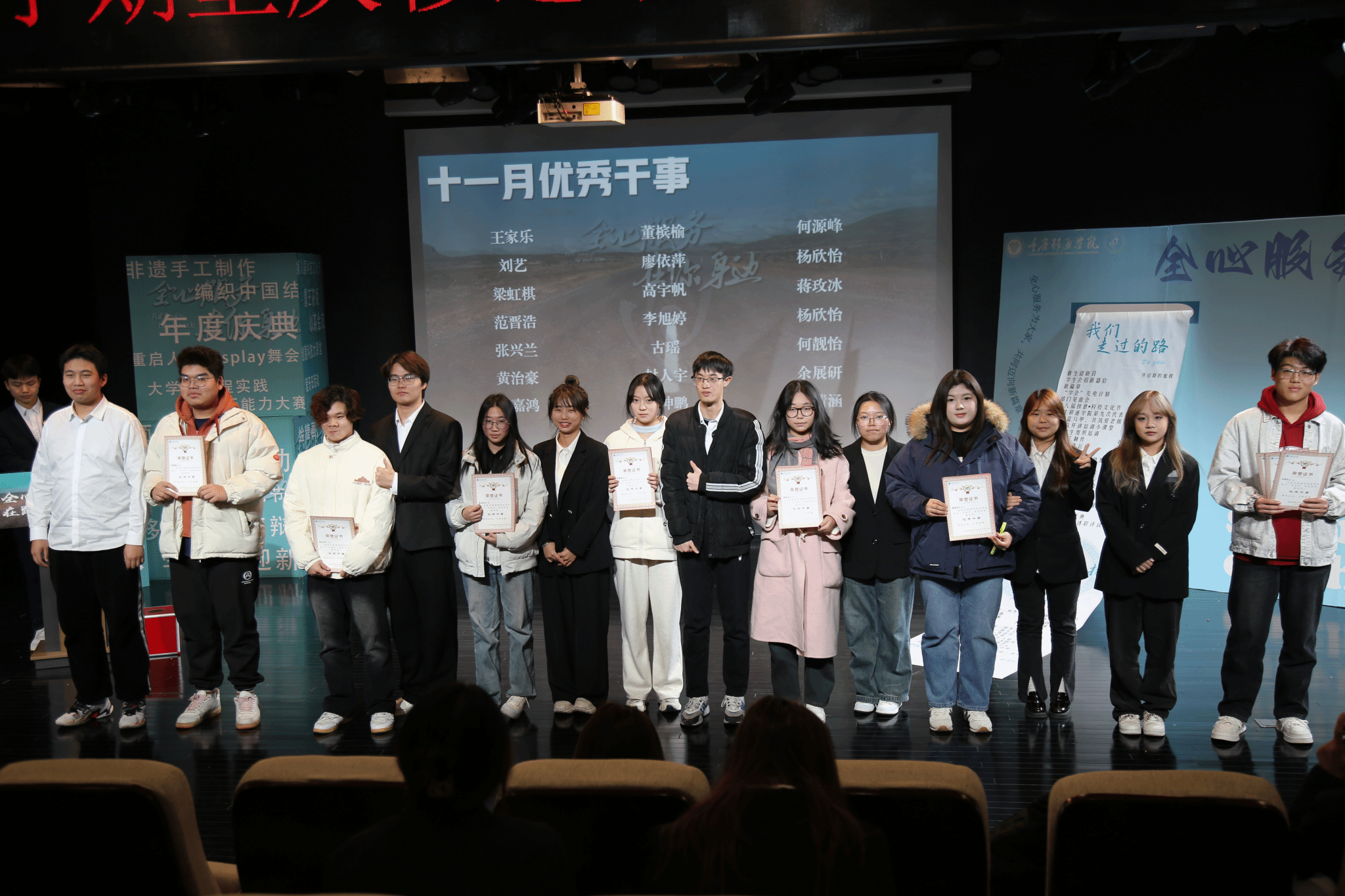 在令人兴奋的抽奖环节之后,我们迎来了颁奖环节,这是本次述职大会新增的亮点。我们为每月表现突出的优秀干事颁发奖状,期望他们在未来一年中继续发挥模范带头作用,激励更多同学积极参与学生会事务。通过这样的表彰,我们不仅认可了他们的辛勤工作和贡献,也向全体学生传达了一个明确的信号:在学生会,每一份努力都将获得应有的认可与尊重。这样的颁奖仪式不仅激发了干事们的积极性,也为学生会注入了更加积极向上的活力。