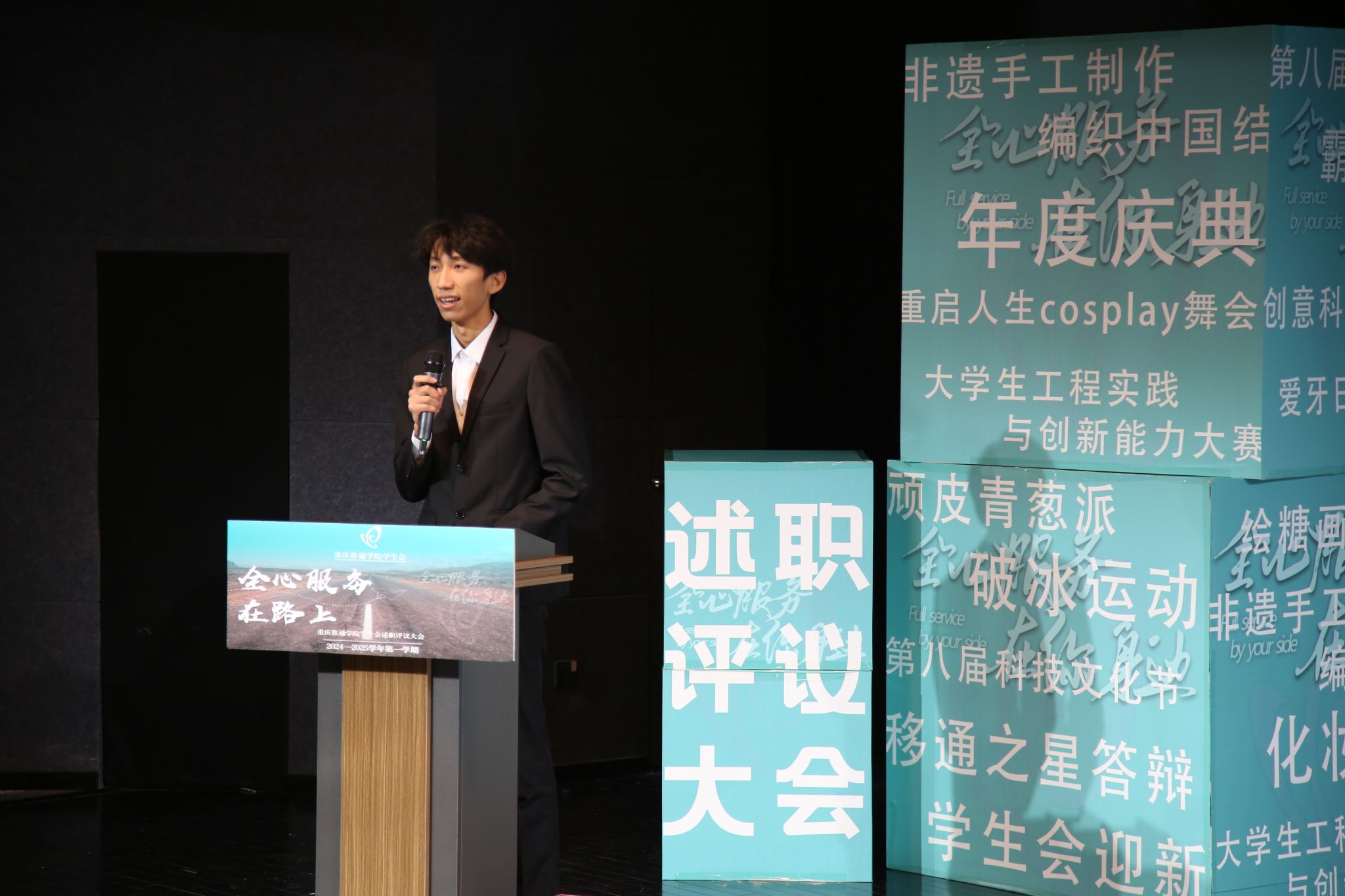 时光荏苒,如白驹过隙,2024年已悄然过去,2025年正踏步而来。回望这过去的一学期,有开学迎新时的期许,有身处困境仍奋力前行的坚毅,亦有无数过往的美好铭刻在心。为回顾和总结过去一学期的工作,展示成果,分享经验,为新的一年奠定基础,12月26日下14:00,我校学生会在六度空间的黑匣子剧场开展了2024—2025学年第一学期的述职评议大会。本次述职会议参会人员:重庆移通学院学生会秘书长、副秘书长、市学联第六届主席团团体成员代表、重庆移通学院学生会全体工作人员、各二级学院学生会工作人员代表。