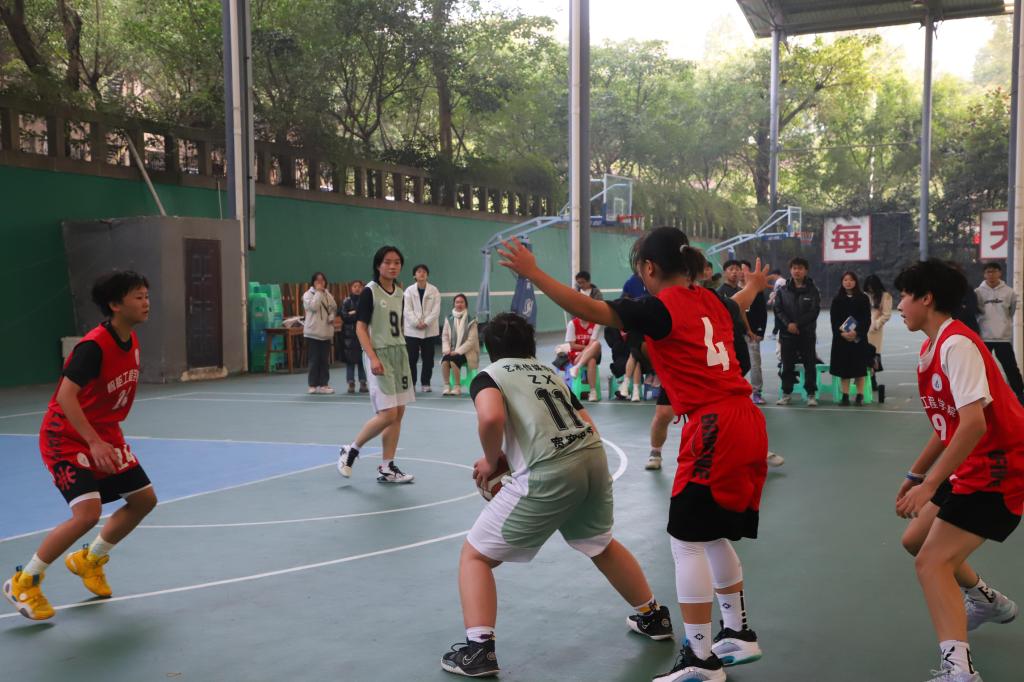 12点15分,哨声响起,比赛正式开始。以艺传院队77号开球,面对智工院队的层层阻拦,77号艰难地将球传给艺传院队5号,但未能投中。智工院队赢得首球,艺传院队迅速调整心态。智工院队犯规,艺传院队获得罚球的机会,艺传77号精准投进两球,全场观众为她欢呼鼓掌。球场中双方你追我赶,进攻,防守不断演变。第一回合在热闹的氛围中结束,艺传院队暂时落后。