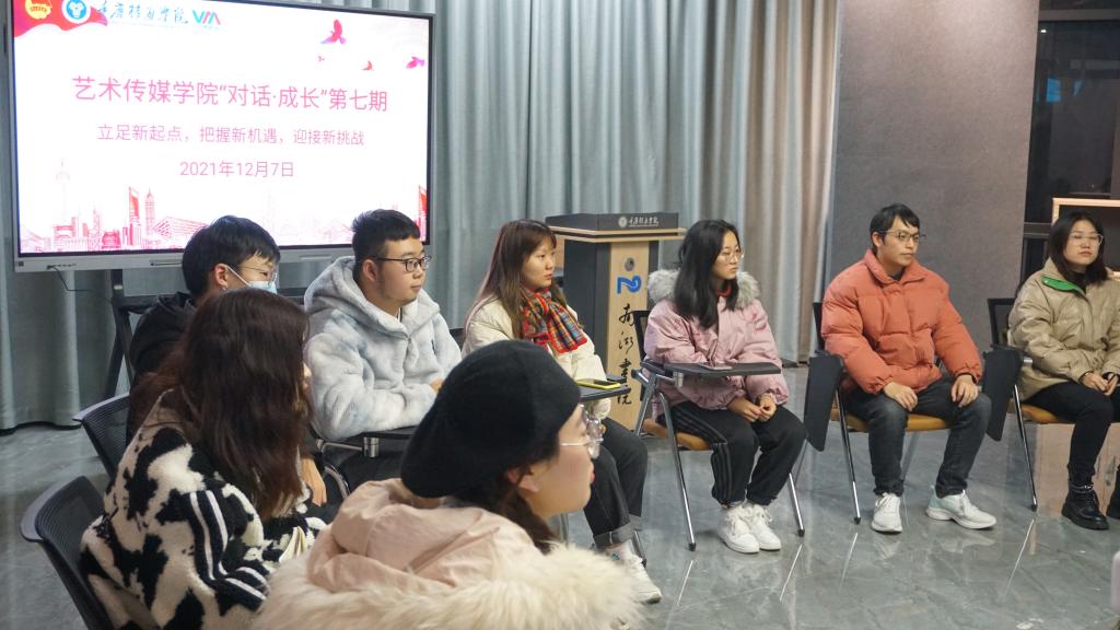 为了加强学院老师与2021级专升本学生之间的交流沟通,促进学生在校的学习和成长,艺术传媒学院于12月7日18点在南湖书院国际文化展厅开展以“立足新起点,把握新机遇,迎接新挑战”为主题的交流座谈会,艺术传媒学院副院长李克伟、辅导员钟梓琪老师、孟易老师以及2021级专升本学生代表参加。