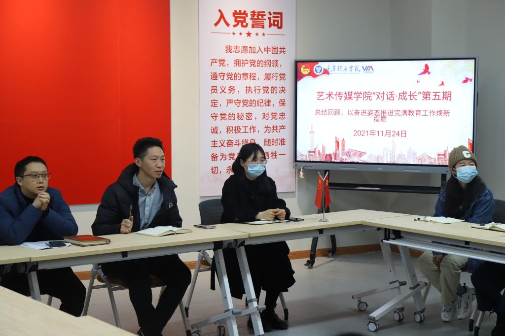 为总结梳理艺术传媒学院前半期完满教育工作的问题与不足,加强学院团总支、青年志愿者协会各方面工作的指导,11月24日17:00,艺术传媒学院学工副院长李克伟老师、部分辅导员以及学院团总支与青年志愿者协会干部于南湖书院党团活动室召开以“总结回顾,以奋进姿态推进完满教育工作焕新提质”为主题的交流会。