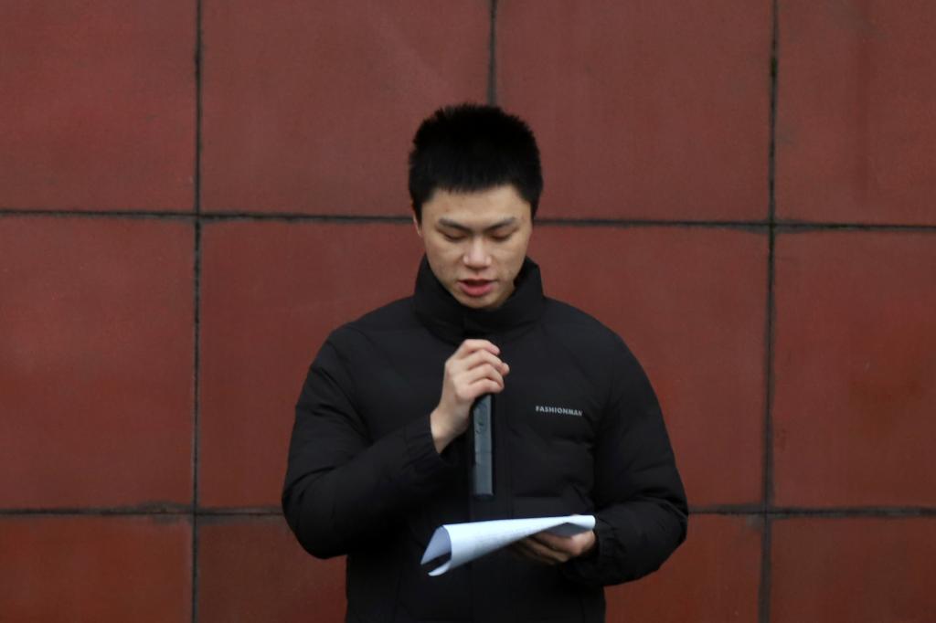 升旗仪式结束后,艺术传媒学院2020级数字媒体艺术的周炜博同学进行主题发言。作为一名光荣的退伍军人,他通过爱祖国要通过实际行动来证明这一主题向全体师生讲诉在边疆驻扎的青春岁月。守卫国家边疆是他身为军人肩上所承担的责任。在提到美国记者问周总理“你们中国人走路是为什么总低着头,而我们美国人走路都是昂首挺胸的”,周总理回答道“那只能说明我们中国人走上坡路,而你们美国人在走下坡路,当然要昂着头走路的”时,自豪感和使命感油然而生。心中有大任,身旁有战友,当提到与他患难与共的战友时他不禁潸然泪下,站在祖国边防最前沿守护祖国的边防不失祖国一寸领土是他们的坚守,有福同享有难同当为人民服务保家卫国的铮铮誓言一幕幕展现眼中。