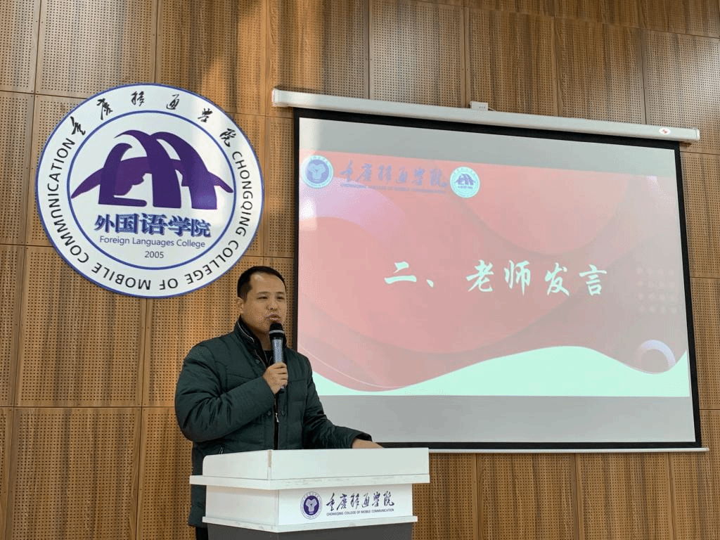 最后,外国语学院学工副院长祝玮老师对于本次大会进行了总结,他表示,学生工作已进入收尾阶段,回首过去的一学期,有收获,有成长;有挫折,有进步;有突破,有创新,可谓是不虚此行。本学期学生会工作融合了我院“心、行、醒、訫”理念,契合了我校“完满教育”理念,活动精,形式多,各部门在各司其职的基础上,融会贯通,共同进步。祝院长还鼓励大家积极进取,努力做一位“跨界青年”“斜杠青年”,加强专业专研精神,以更高的要求严格对待自己,发挥想象力、创造力,努力打造学院品牌,牢记初心使命,通过学生会这个平台展示自己。努力迈出第一步,勇于尝试第一次,这样一定能有不小的收获。