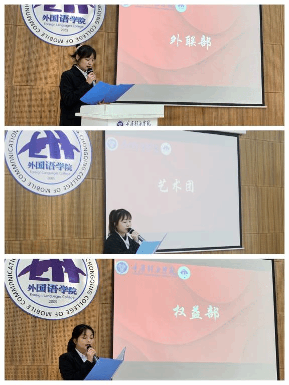 各部门干部代表分别从部门建设、活动展示、工作不足、经验总结、未来展望等几个方面展开述职。