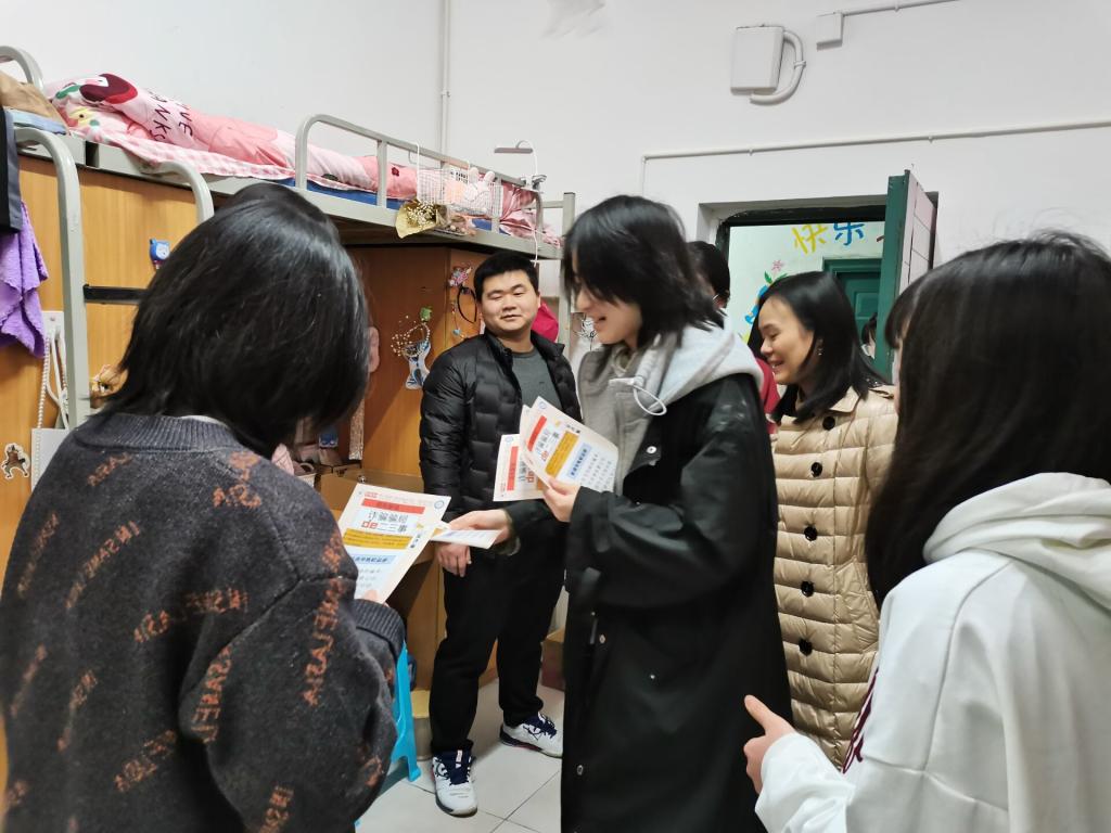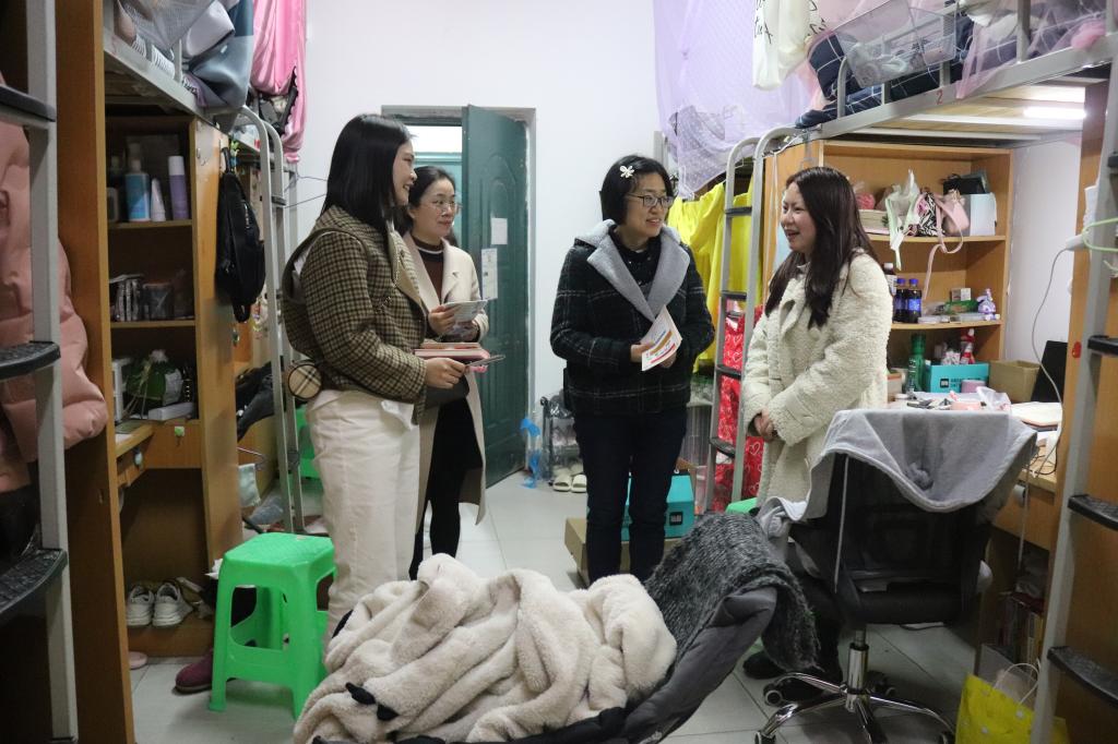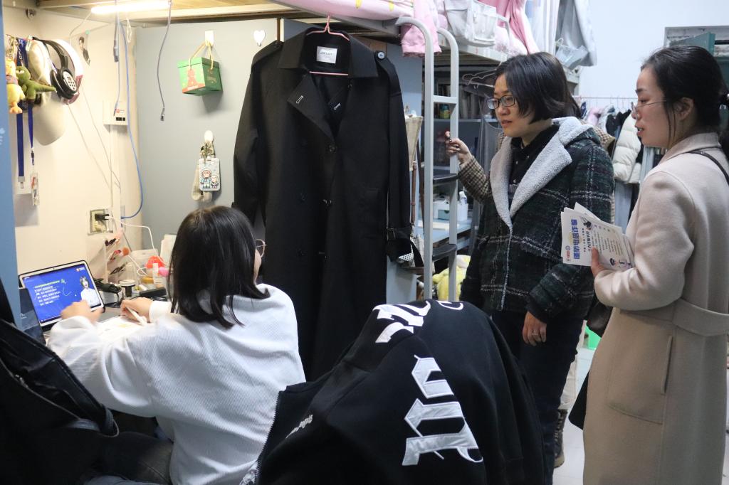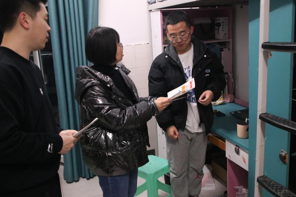 敲开一间间寝室门,迎接辅导员老师们是同学们洋溢着热情的笑脸。在走访中发现同学们的学习状态非常好,大二的同学正在自主学习,准备三月底的计算机二级考试,大三不少同学在备战考研。学工副院长刘薇唯说道:“在寝室有这样浓厚的学习氛围是非常难得的,同学们在保持学习状态的同时也要注意劳逸结合,除了学习之外要有适当的休息,可以在课余时间外多参加校内、校外的活动,但前提是要注意自己的安全。” 同学们也积极分享了平日爱好,在校园的所见所闻,大学生活的所得所感。在老师们的关切下,同学们倍感温暖。