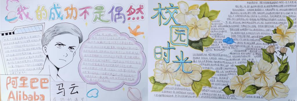 手抄报比赛培养了同学们的艺术修养和审美水平,发现感受阅读和校园之间的独特美,并将其描绘于纸上,抒发自己的情感,“我的成功不是偶然”里马云一步步的成功创业并建立阿里巴巴,展现了马云的能力,他的人生事迹令人感到惊叹;“校园时光”里,校园一花一树、书院、寝室、教学楼都充满着魅力,展示着大学青春的色彩,本次活动让同学们从另一个视角去看待阅读和校园,激发了同学们阅读兴趣和对校园美好生活的憧憬。