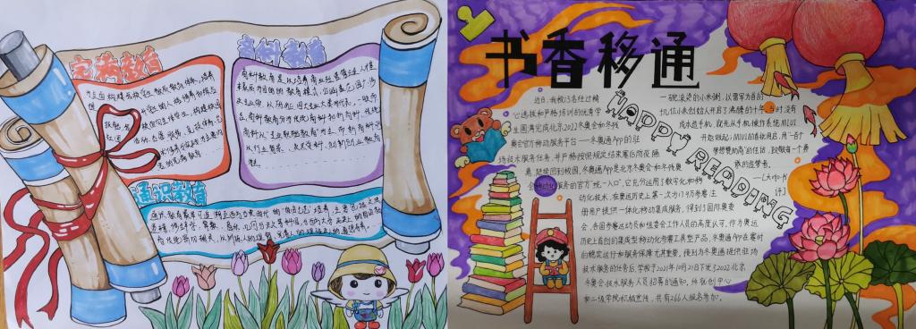 以阅读书籍为主要内容,将美意与阅读结合融入手抄报中,引导同学们自我教育和相互促进,在这让人心灵启迪与荡涤、思想陶冶的地方,以画传情,分享自己的阅读感悟。