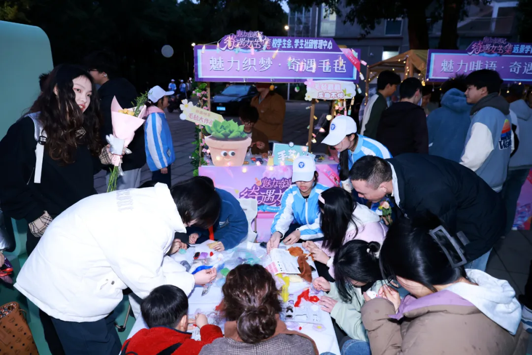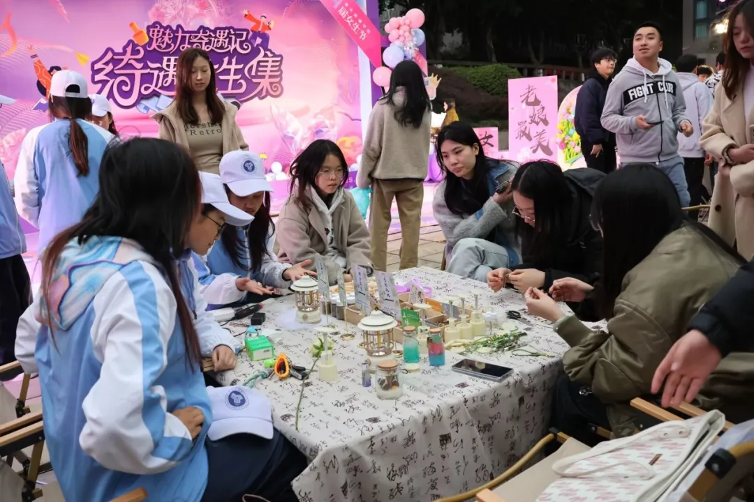 现场各主题围绕非遗+科技融合手工体验、光影美学+书院文化以及沉浸式互动探索与个人魅力表达,打卡互动、舞蹈、音乐、饰品DIY、美食制作、养生体验......每一个环节都充满了“魅力的N种可能”,仿佛一场“魅力星球”里的魅力狂欢。同时,活动现场融合国潮手作与青年文化符号,打造校园版“新生活新女性魅力实验场”,每个主题都成为同学们的打卡圣地,大家争相晒出自己的手作成果,朋友圈瞬间被“魅力DIY”刷屏,俨然一场校园版“手工艺术节”
