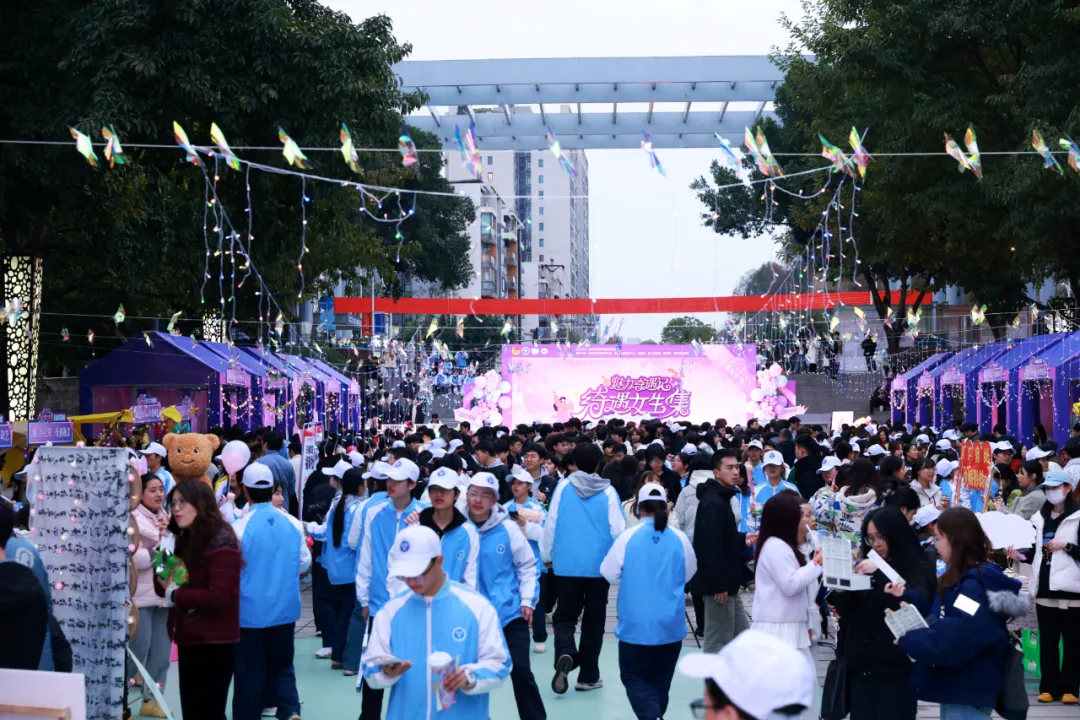 3月7日晚,在3·8妇女节到来之际,共青团重庆移通学院委员会、重庆移通学院学生会携手各二级学院、书院、相关学生社团,在黄桷树广场开展第十四届女生节活动“绮遇女生集”,为重庆移通学院2000名女生,打造专属女性的“沉浸式奇遇乐园”,30个主题摊位、5大魅力秘境、1个主题魅力街区为线索,带领参与者穿越手作星河、非遗秘境与味蕾宇宙等区域,开启一场发现魅力、感受魅力、呈现魅力的“魅力奇遇记”。