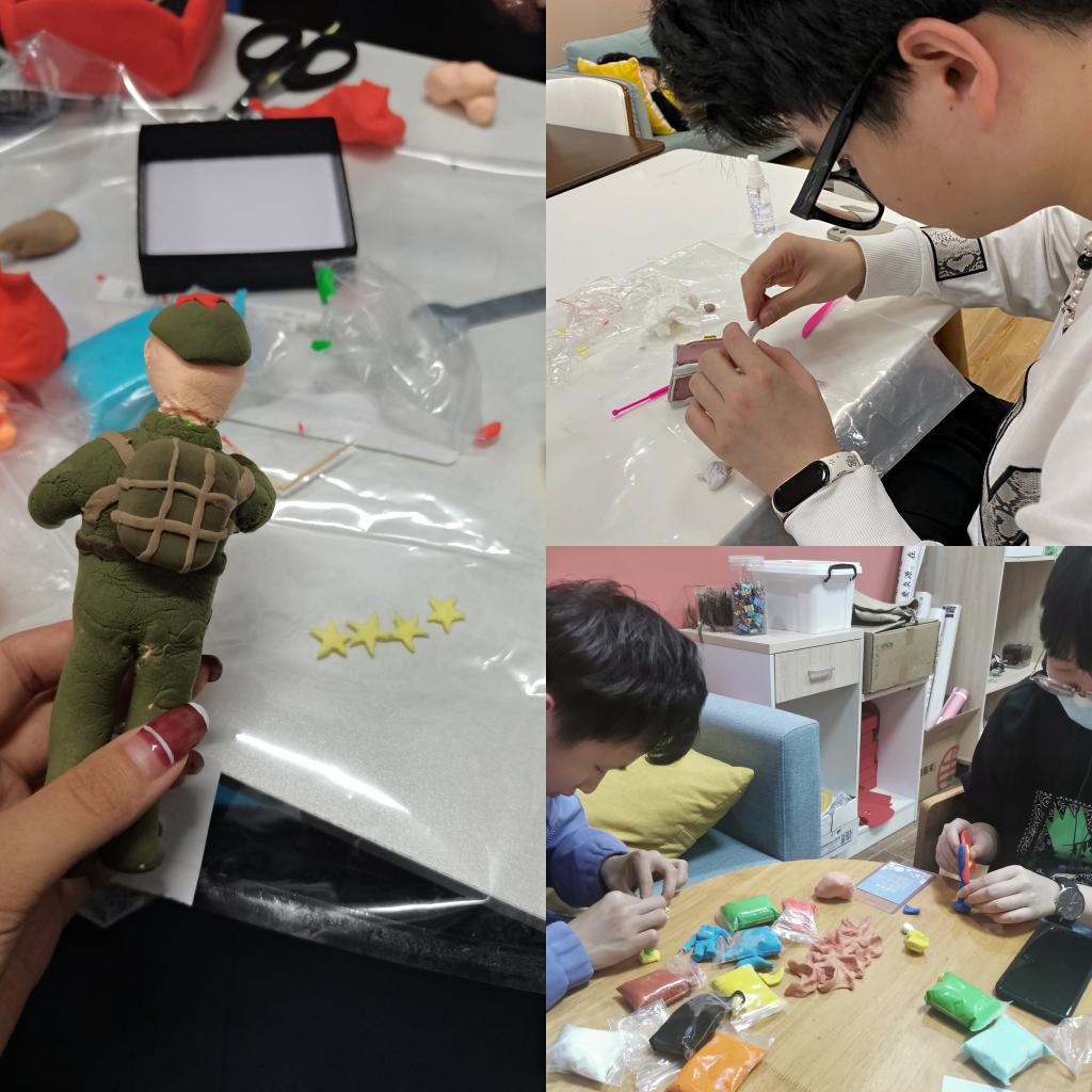 活动期间,同学们利用主办方所提供的材料进行创作,塑捏出自己心中的“红色印记”。小小轻泥,意义非凡。最后所呈现出的作品有表达对革命先辈的敬仰、对未来中国发展的畅想、还有对疫情下防疫工作者的赞美。参与活动的同学说道:“作品中的小人代表着每一个中国公民,生在红旗下,长在春风里,心心向党。”同学们塑造的不仅是一件作品,更是对党的礼赞和对祖国的热爱。