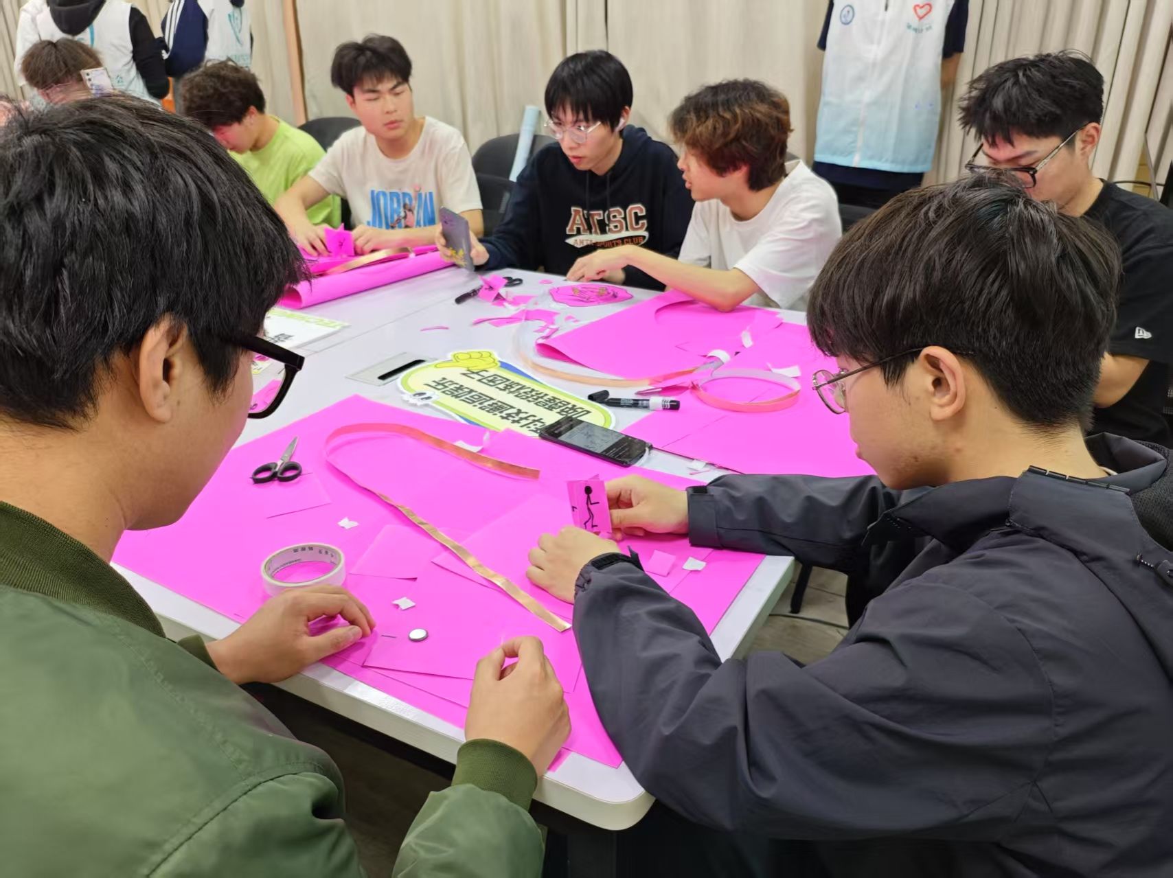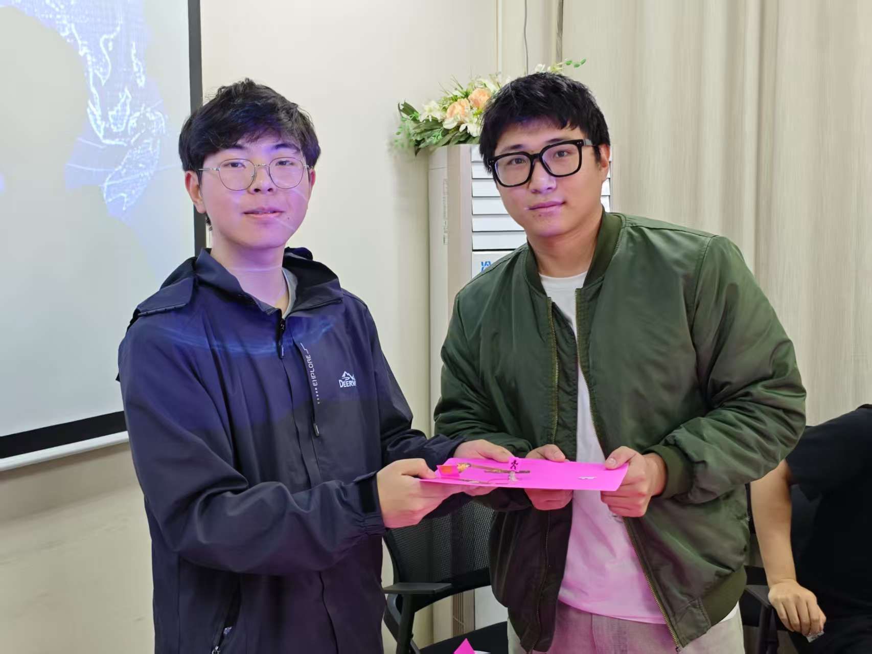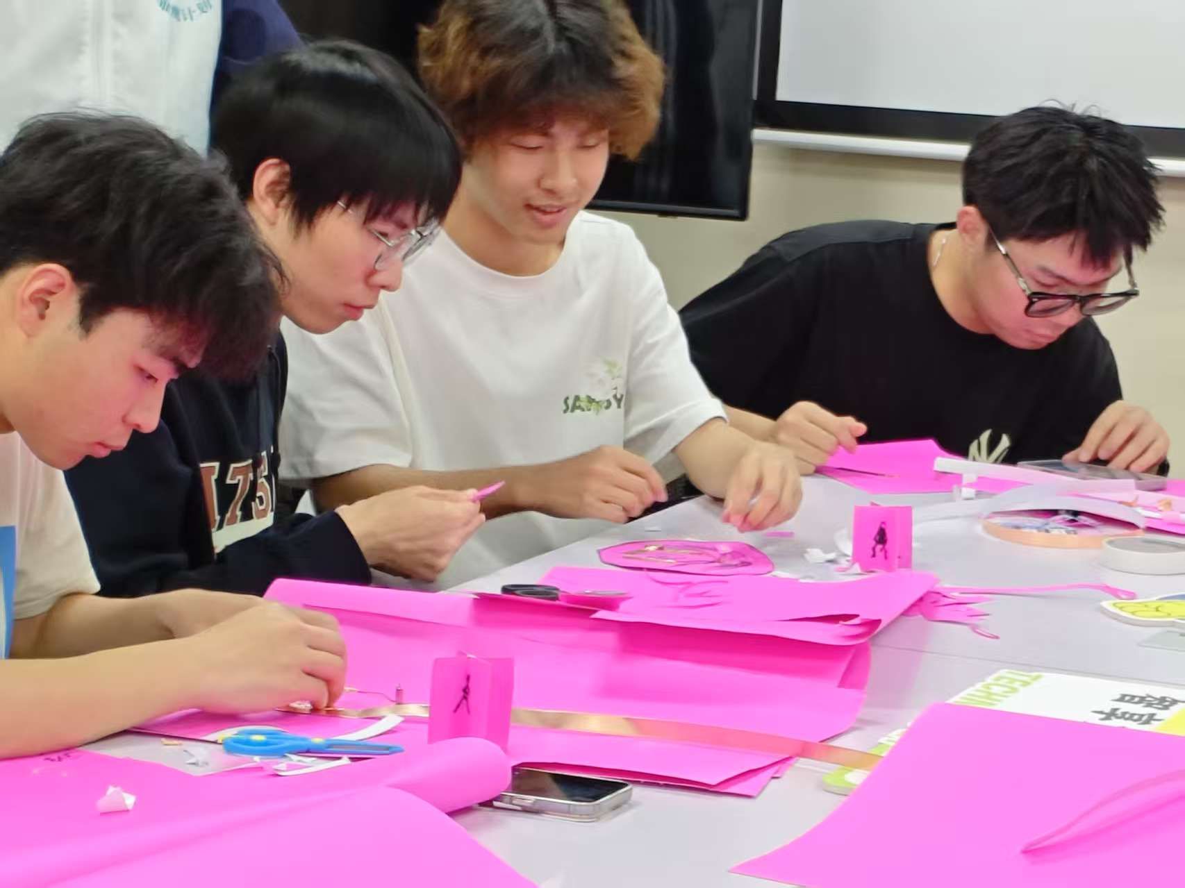 活动现场,主持人通过介绍一些简单易懂的科技原理以及科技制作的常见方法,让同学更好地了解生活中的一些小科技,激发学生们对科技制作的兴趣。除此之外,为了提升团队的协作能力、时间管理技巧以及对复杂任务的处理效率,主持人将带领同学们完成材料组装大比拼,根据PPT中小发明制作教程,同学们进行实际操作,完成一个个有趣的科技小发明。裁判通过小组用时多少与完成质量,进行评分。此次大比拼设一等奖4名,参与奖若干名。评分越高者,奖项越高。