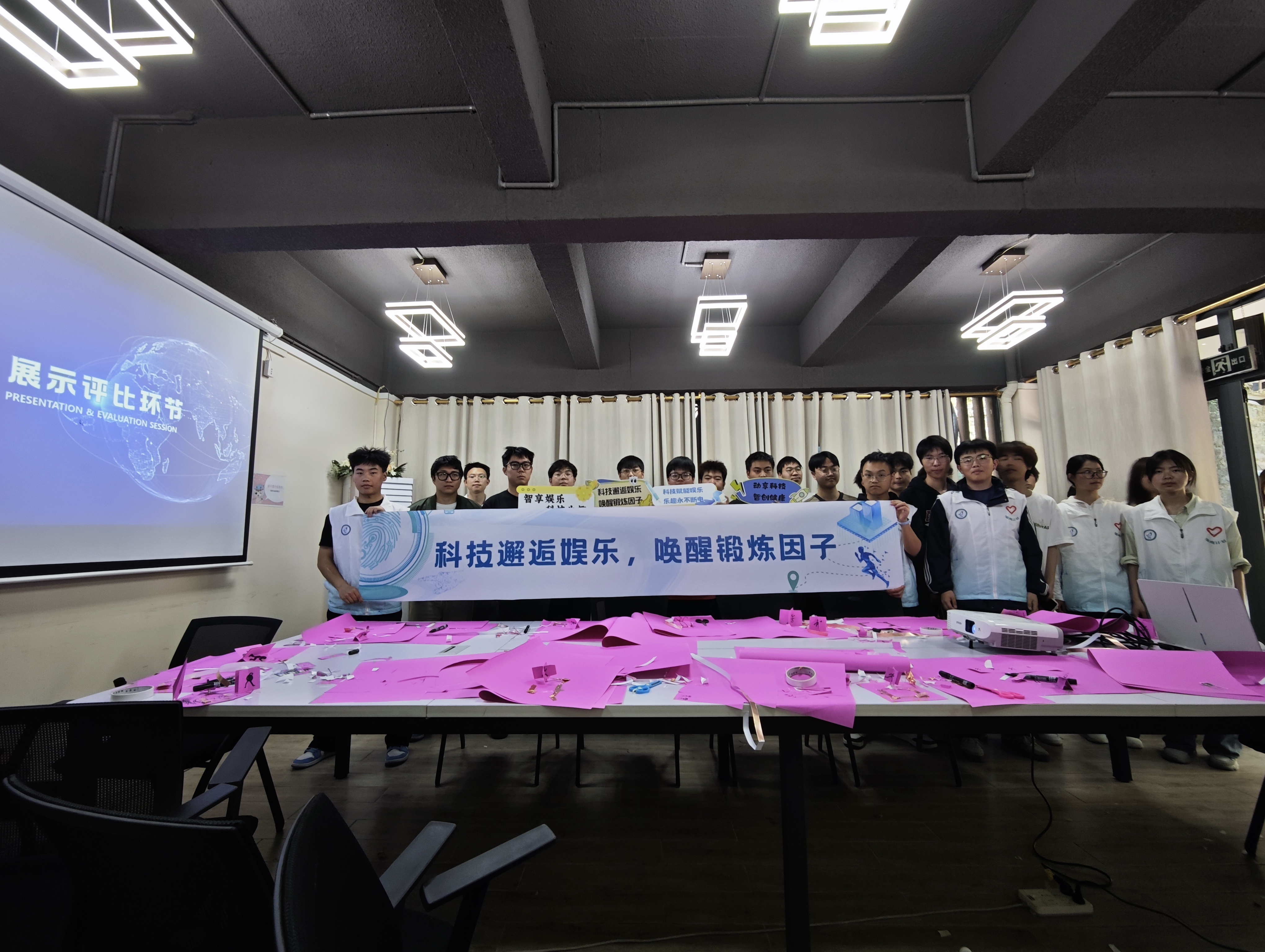 活动的最后是每组选手代表上台展示作品,并分享他们在“科技邂逅娱乐,唤醒锻炼因子”主题下亲自制作科技小发明过程中的创新成果与感悟。选手们精心制作的作品,不仅是结构的组合,更是科技发明与趣味艺术的融合。在展示中,他们详细阐述了生活中微不足道的科技发明,背后所蕴含的独特价值。以零碎杂乱的材料,拼接组建成为有趣的、实用的、精美的作品。
