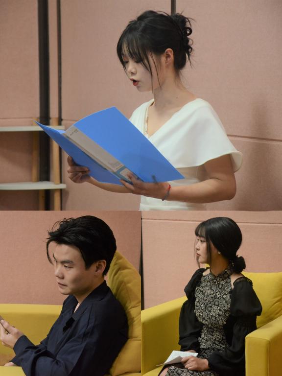 伴随着邹雅兰同学激情高昂的开场,沉稳的气场,流利的说辞,无疑是给各位参赛选手们立了榜样,至此艺术传媒学院第八届主持人大赛决赛正式拉开了帷幕。虽然隔着屏幕,但摄像头里的选手们依然个个摩拳擦掌,怀揣着希望与梦想,每个选手都期待着自己的完美发挥。第一轮是即兴评述环节,六位选手根据抽到的题目,两两分组,每位选手见解独特,语句流畅,情绪饱满,三组选手的应变能力强,他们沉浸在比赛中、享受比赛的过程,即使在线上也同样能感受到洋溢青春的热情与激昂的场面。第一轮结束后,由后台的工作人员统计评委席的打分,选拔出三位选手进入决赛第二轮。