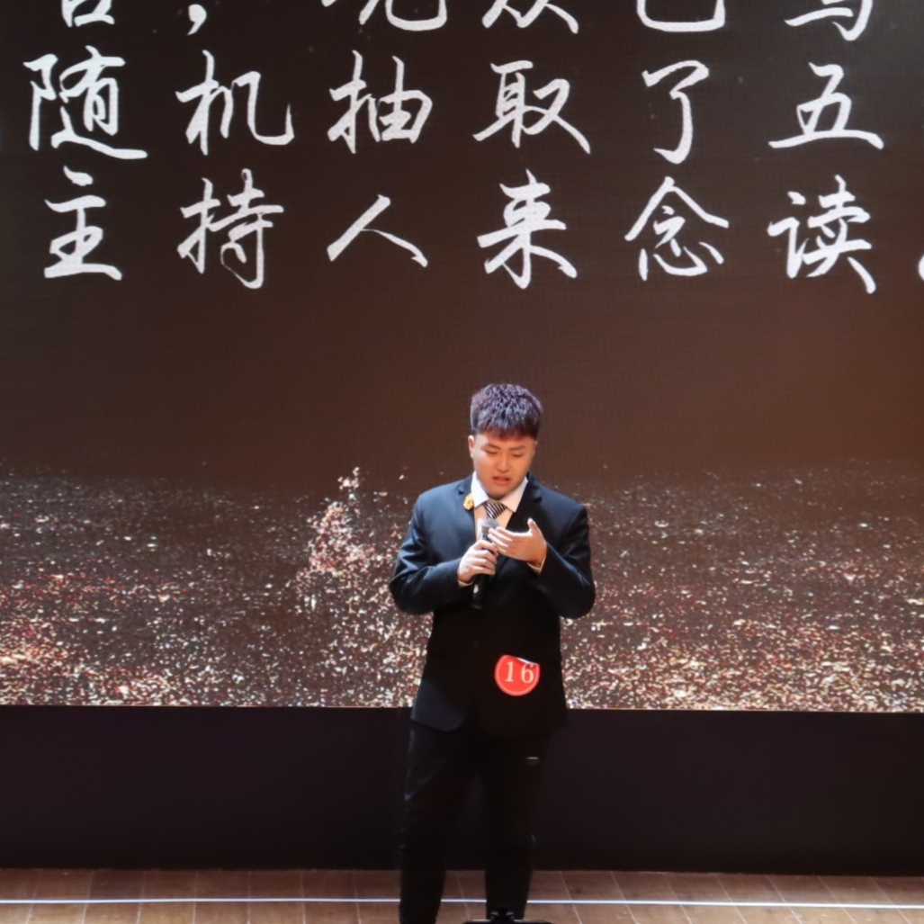 第一轮的比拼就将比赛带入了高潮,最终三位选手开始冠亚季军的争夺。决赛第二轮是主题演讲,选手们围绕“我与主持”这一主题,展开了自己的叙述。三位选手在充分的准备后声情并茂地演讲,将他们的主持经历娓娓道来,诠释着属于他们独特的追逐主持梦。评委们也正聚精会神地听着选手们流露的真情实感。各个选手精彩纷呈的讲述不仅展现了自身的风采,还证明了他们对主持的无限热爱。在一个小时的激烈竞争后,本次主持人大赛进入尾声,最后由艺术传媒学院团总支书记安珈璇老师对此次活动进行点评。