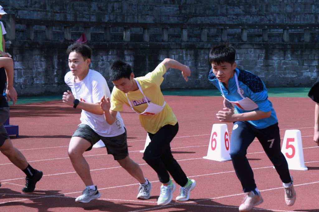 “砰!”第一声发令枪响起,男子100米预赛正式开始。站在起跑线后,脚踩起跑器上,坚毅的目光直视前方。一枪令下,运动健儿如猎豹一般迅猛出击,直奔终点。来自艺术传媒学院的马成燚凭借自己强大的爆发力和日积月累的训练,最终获得男子100米第二名。艺术传媒学院的姑娘们也毫不示弱,张语菡获得女子100米第六名。艺术传媒学院的王璐老师,直接拿下教职工男子100米第四名。