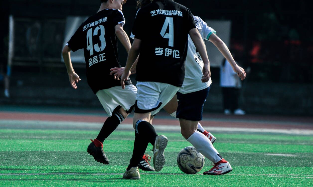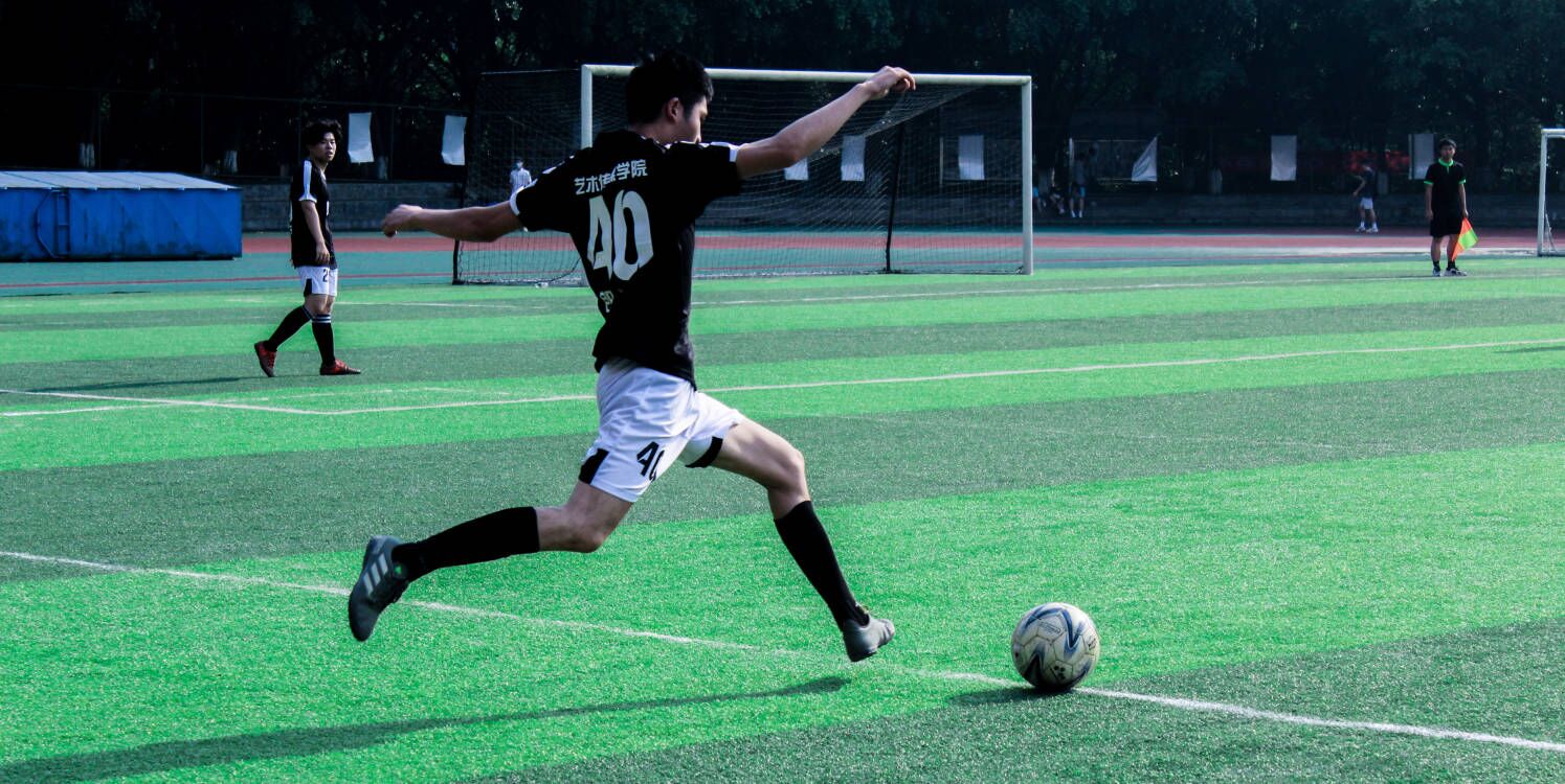 足球场上,球员们奋勇拼搏,上演着一幕又一幕的精彩瞬间。艺术传媒学院的队员们犀利的射门和精彩的配合迎来阵阵欢呼,但是由于队员们的失误,在上半场的比赛中,艺术传媒学院队暂时落后于中德学院队。