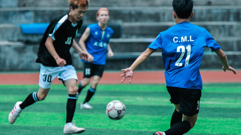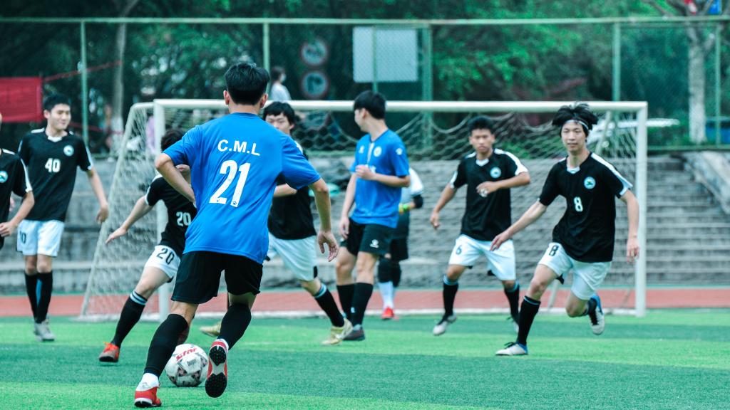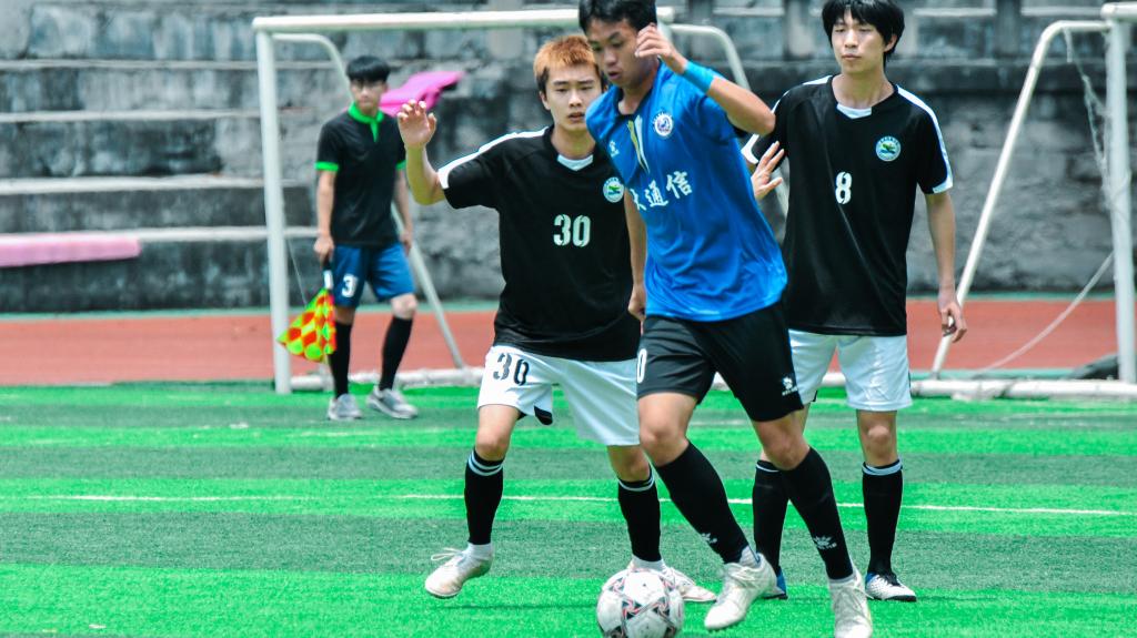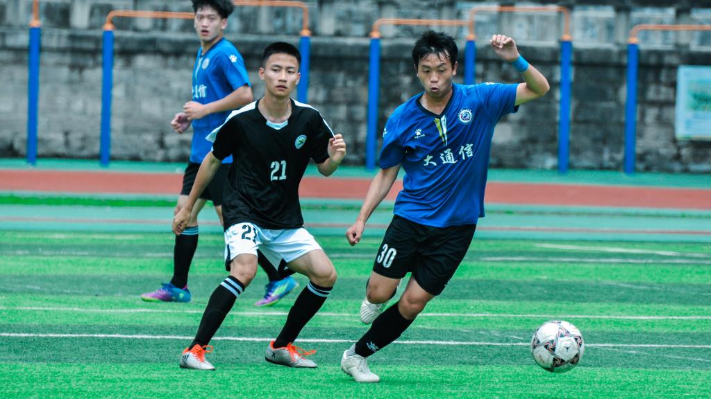比赛开始,双方队员都运用着自己的战略,压制对方,进行猛烈进攻。艺传队员黑色的背影,与通信队员蓝色背影相互交织,战况激烈,难舍难分,不分胜负。这也体现出他们良好的足球天赋和扎实的足球功底。给观众们带来深刻印象,也使学校坚定培养足球人才的信心。