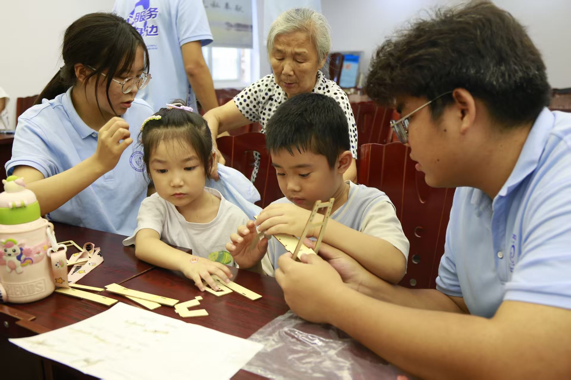 趣味实验与手工创作交织,让科学学习更具沉浸感。“镜面实验课”上,志愿者用多面镜子搭建“反光隧道”,引导孩子们探究光的反射规律,孩子们在“镜子迷宫”中追逐光斑,笑声此起彼伏;“木质模型拼装”活动则考验耐心与协作,孩子们分组合作拼装桥梁、房屋模型,在讨论“如何让桥梁更稳固”的过程中,潜移默化理解力学原理。这些活动打破了“坐在教室学科学”的传统模式,通过“做中学、玩中学”,让孩子们在实践中培养观察力、创造力和团队协作能力。