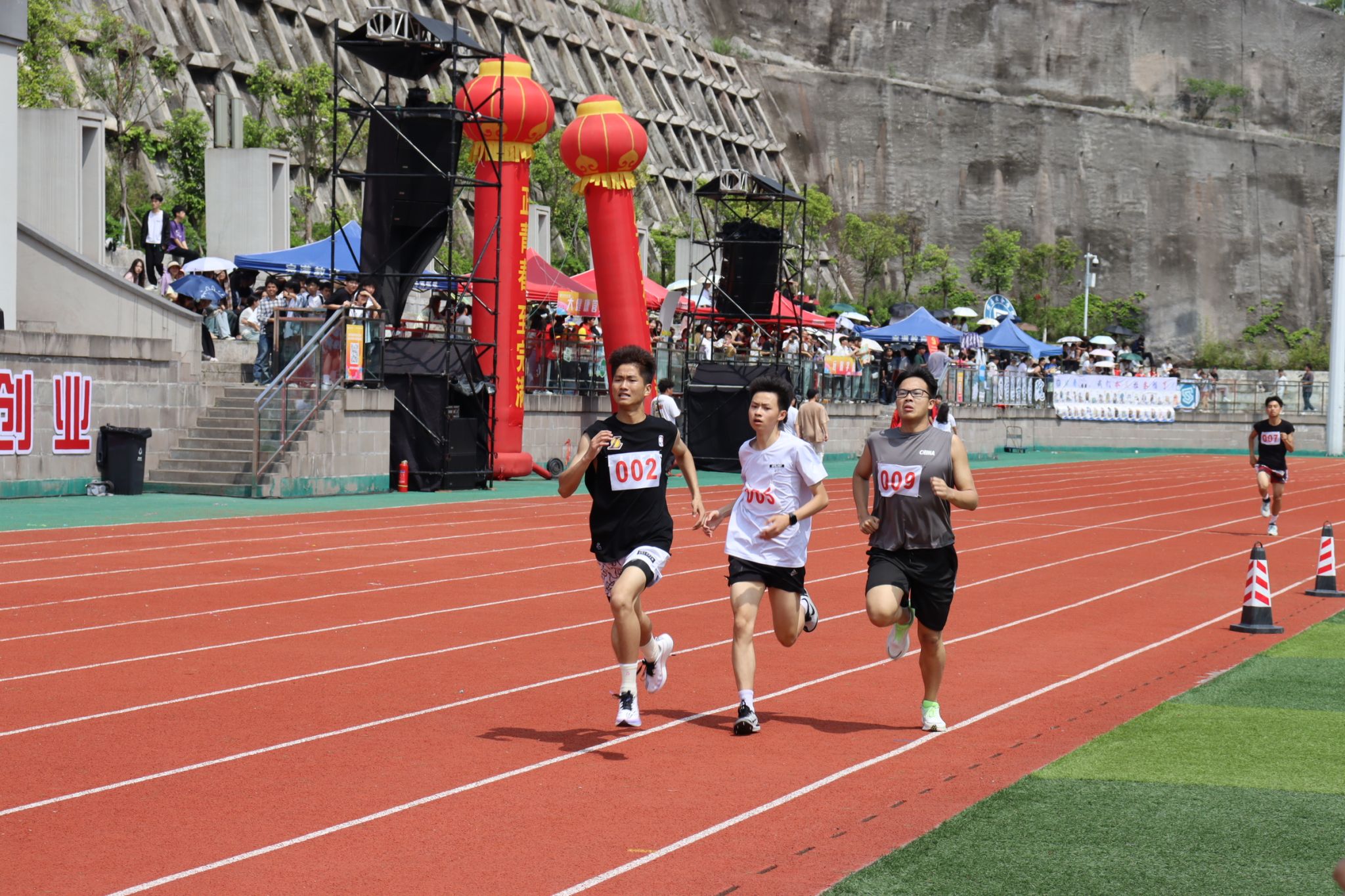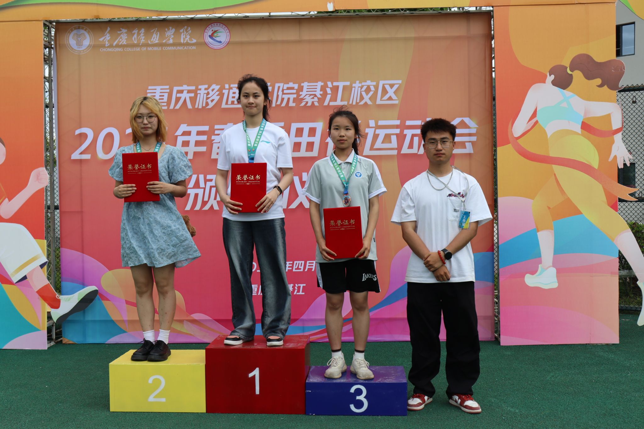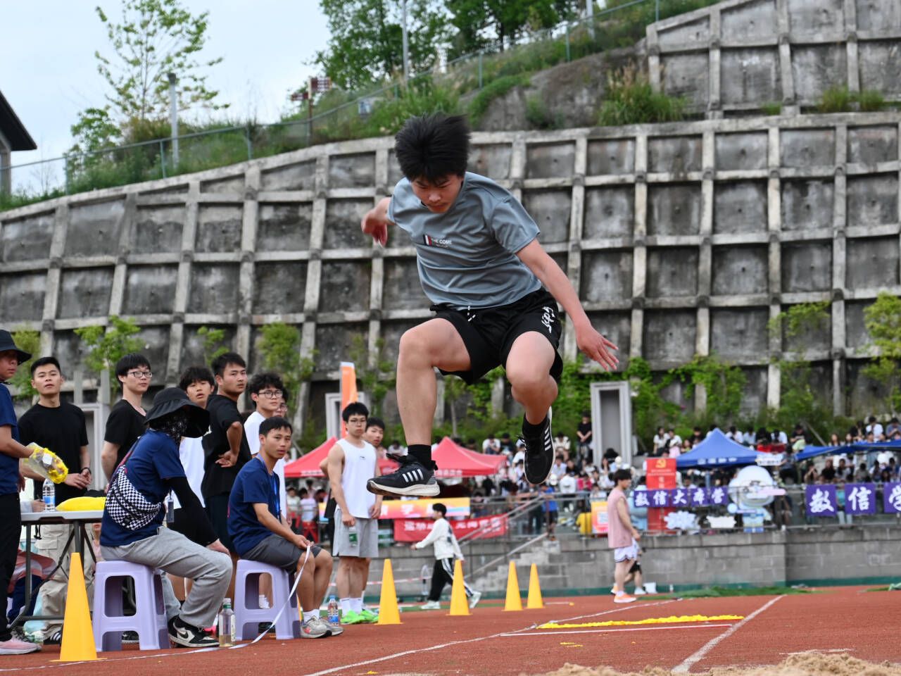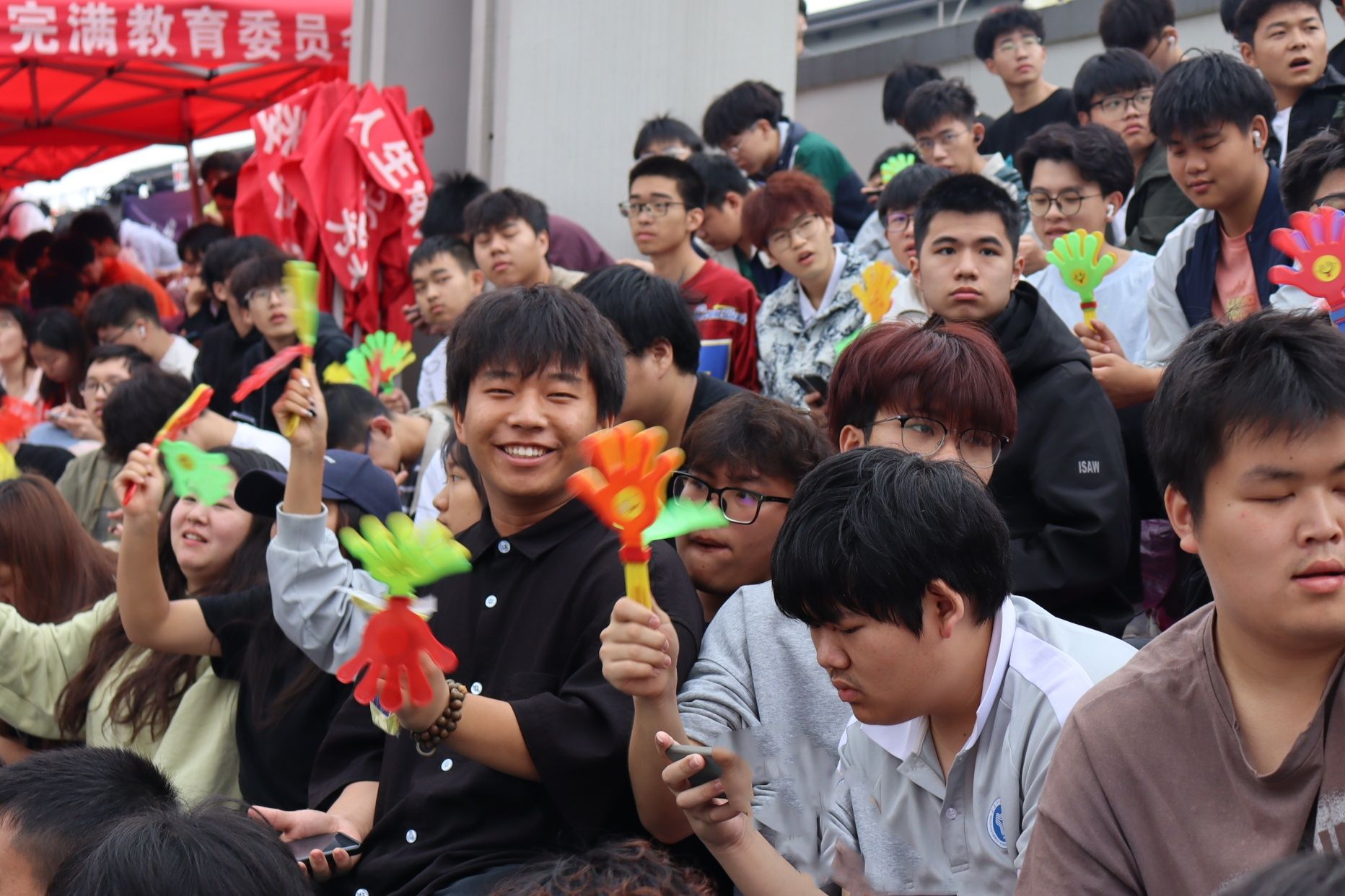 现场气氛热烈,通信学子们激动不已。无论是看台上、观众席还是运动员通道,大家都为即将到来的比赛做好了准备。他们的脸上洋溢着期待和紧张,手里紧握着为我院选手加油的旗帜,或激动地挥舞着手臂,为运动员加油打气。他们希望自己的加油声能给予运动健儿们动力和信心,助他们一臂之力。在运动场上的每一个角落,都能看到志愿者们挥动着旗帜,指挥着跑道上的秩序,为我们的运动员保驾护航。