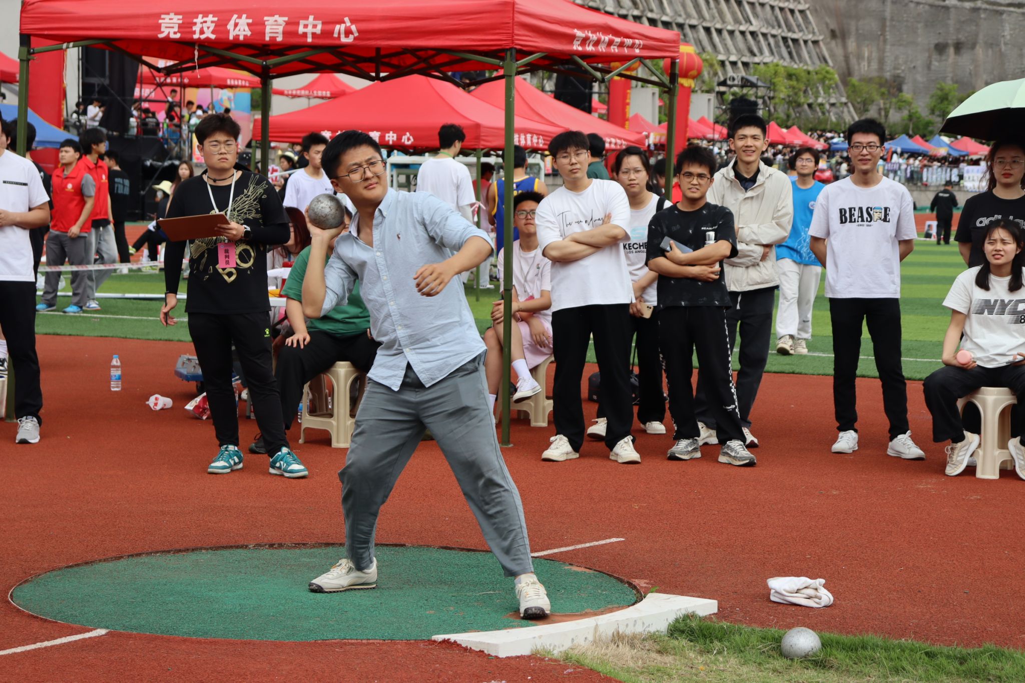 100米的赛道上,运动员们屏息凝神,目光如炬,等待枪响迈步的那一刻。短短几秒,起跑、超越、叫好一齐上演,令人印象深刻。铅球的比赛场上,运动员们托起球静静感受它与土地的共鸣;随后一掷而出,或欢呼,或唏嘘,深深牵动着观众们的情绪。此外,还有800米跑道上的坚持与喘息、跳远赛场上的纵身与舒展、接力比赛中的配合与拼搏等等。在赛场上运动健儿们将理想放飞、将热情燃烧、将辛苦的汗水这射程阳光下最绚丽的光芒,展现出了朝气蓬勃、团结一致的良好精神风貌。用一言一行、一举一动,彰显着我院的风采。