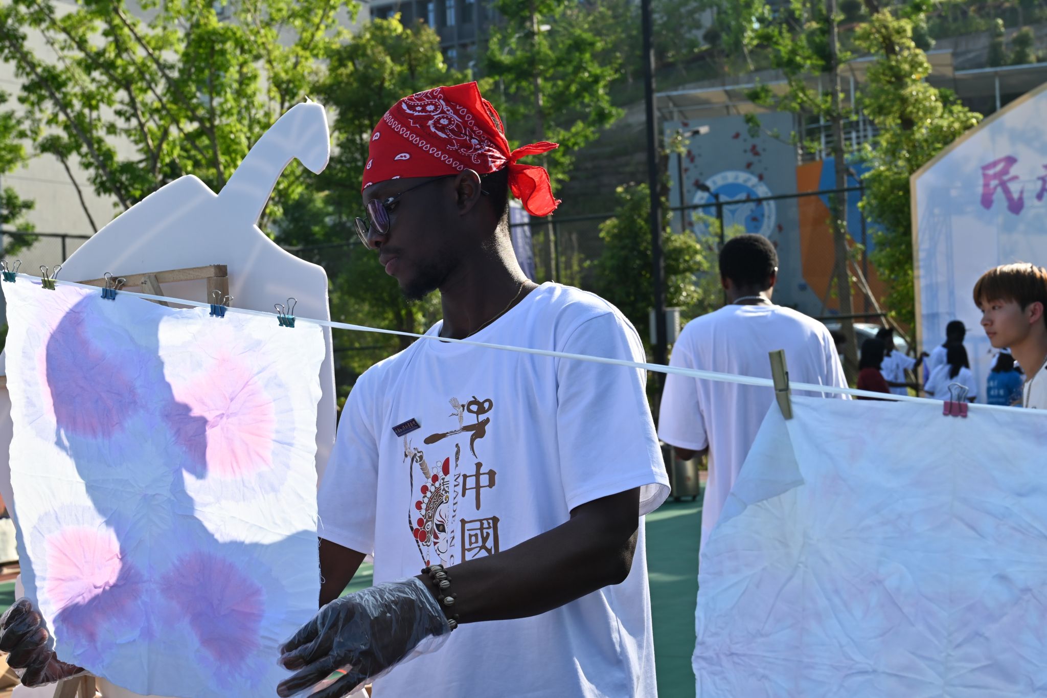 每一块布料、一扎皮筋、一盘染料在外国友人手里交织、扎结、染色,绽放出绚丽的光彩,那蓝白相间的图案,如同大自然中盛开的花朵,清新又脱俗。那洗不掉的蓝色,深邃而神秘,像是夜空中闪烁的星光,永远璀璨夺目。扎染之美,美在随心所欲,美在独一无二,一如各自生命的独特绽放。