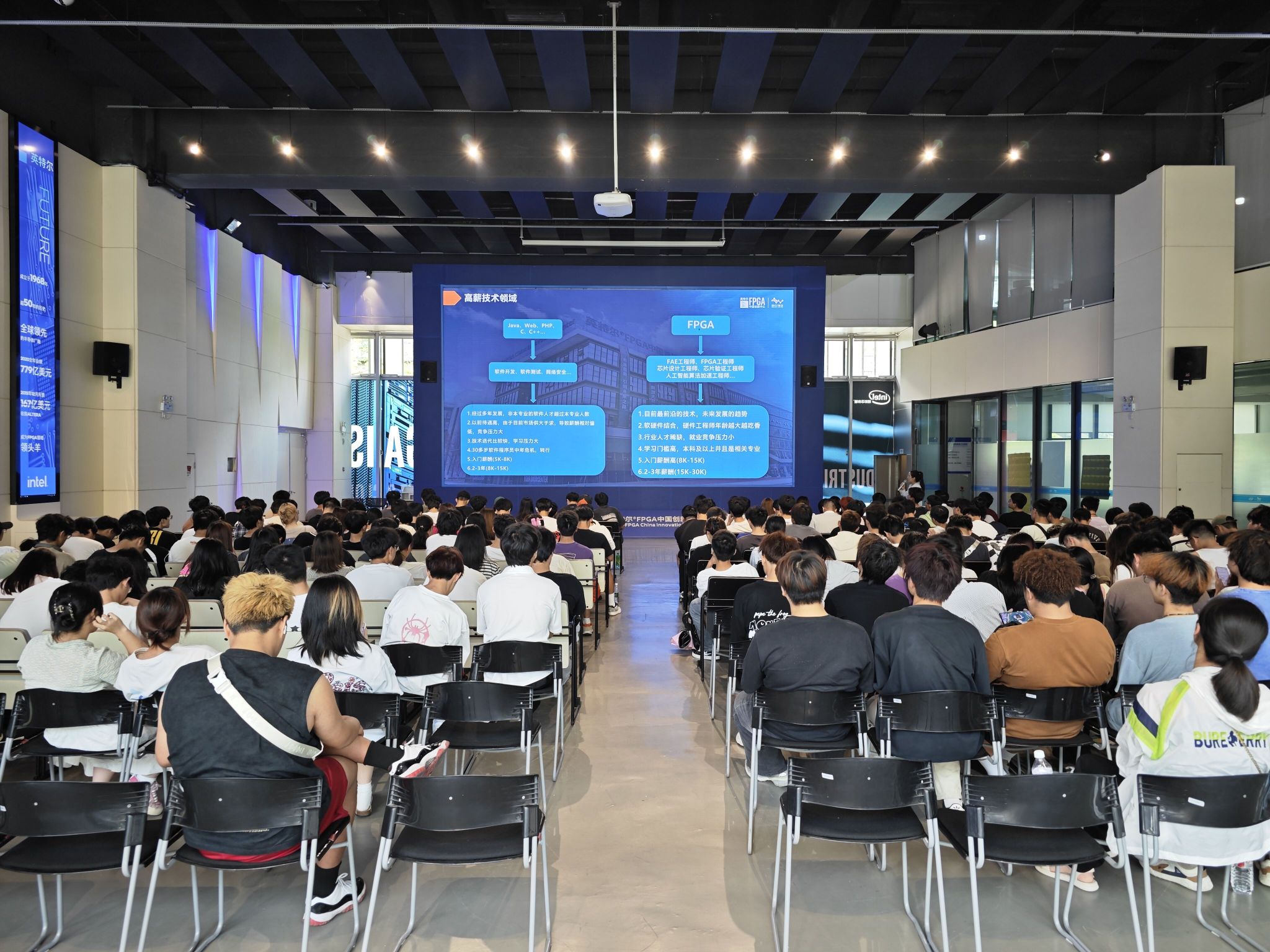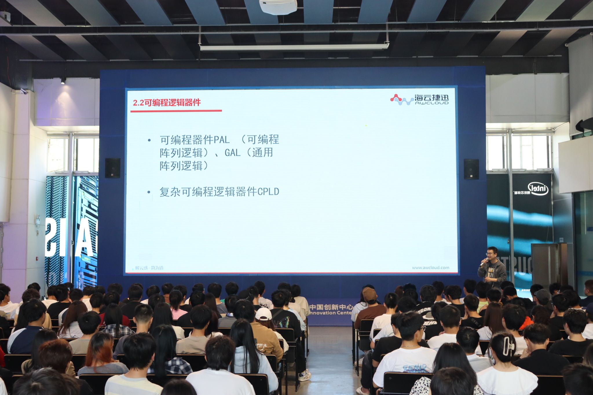 实习活动首先由海运捷迅公司的专业人员为学子们带来一场精彩纷呈的讲座。他们细致介绍了英特尔FPGA中国创新中心成立的背景、荣誉、研发成果和创新中心的职能,让同学们对海运捷讯公司的雄厚实力和卓越底蕴,以及海运捷讯搭建FPGA创新平台对于芯片行业发展的重要意义有了深入了解。同时,他们以生动的语言和丰富的案例,深入浅出地阐述了FPGA的定义、功能、应用场景以及FPGA岗位的职业前景,让同学们对FPGA技术有了更为清晰的认识。