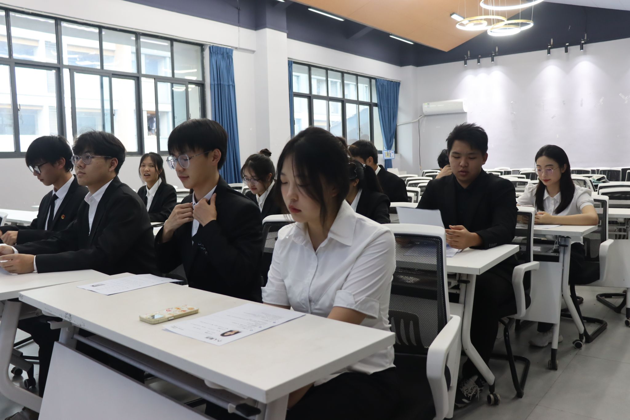 本次面试共设自我介绍和压力竞答两个环节。同学们身着正装,精神抖擞,带着紧张与期待步入面试室,他们沉稳介绍了自己的特点、工作经历以及对应聘职位的理解。面试官根据候选人的申请材料,针对性提出了思维深度、应变能力和团队协作能力等问题。面对这些问题,同学们自信回答,条理清晰,展示他们扎实的专业基础和良好的综合素质。即使有部分同学因紧张回答稍显不足,面试官也耐心鼓励,指出问题并给出建议。