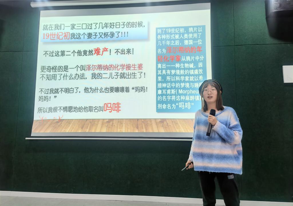 在淬炼·国际商学院工商管理专业董小碟的讲课中,十个问题贯穿衔接“防艾于未然”的主题,“艾滋病是什么?携带HIV=患有艾滋病?接触了艾滋病毒一定会感染艾滋病吗?……”给同学们普及了很多防艾常识及生僻知识点,在场人员表示真是收获满满。来自软件工程专业的参赛选手丁俊毅,一开始便抛出一组触目惊心的数据,“截至2019年底,我国吸毒人员约214.8万名,占全国总人数的0.16%,而18岁至35岁的吸毒人数约有104.5万。中国毒品形势报告明确,禁毒工作刻不容缓。”而后,他又从法律角度宣讲了“禁毒那些事”,以法律告诫大家切勿触碰毒品高压线。