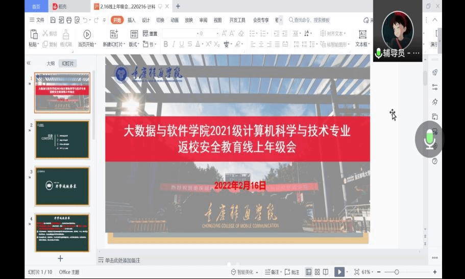为了将开学各项工作落实落细,大数据与软件学院全体辅导员老师多举措并举,分专业分班级做好开学工作。2月16日,学院全体辅导员老师通过通过线上腾讯会议的方式召开了返校前年级会。各位老师在年级会上,就返校疫情防控要求、开学安全注意事项、教育教学及补考安排等事项。