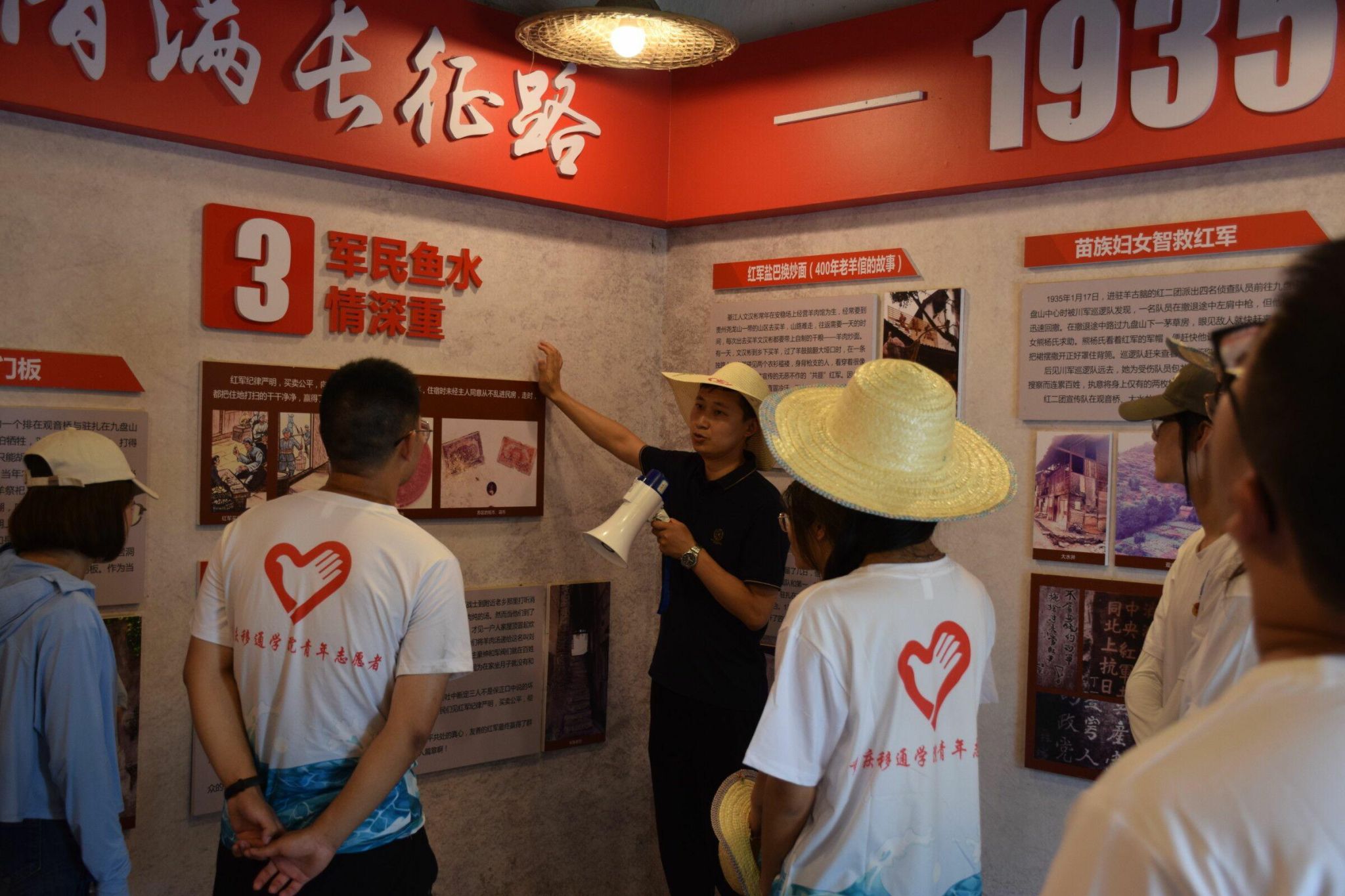 为传承“红色长征”革命精神,感受安稳镇的红军长征文化,传递爱国情怀。2023年6月28日下午,重庆移通学院“传红‘綦’·寻红迹”党史学习教育团一行17人在羊角村何康书记的带领下围绕“一碗羊肉陈列馆”“大垭口”“红军街”“编草鞋”四个地方展开活动。在近五个小时的参观途中,何书记讲述红军故事,激发了志愿者们的爱国情怀,增强了集体意识。先烈们坚强不屈,百折不挠的革命精神在每一个队员的心中久久回荡。