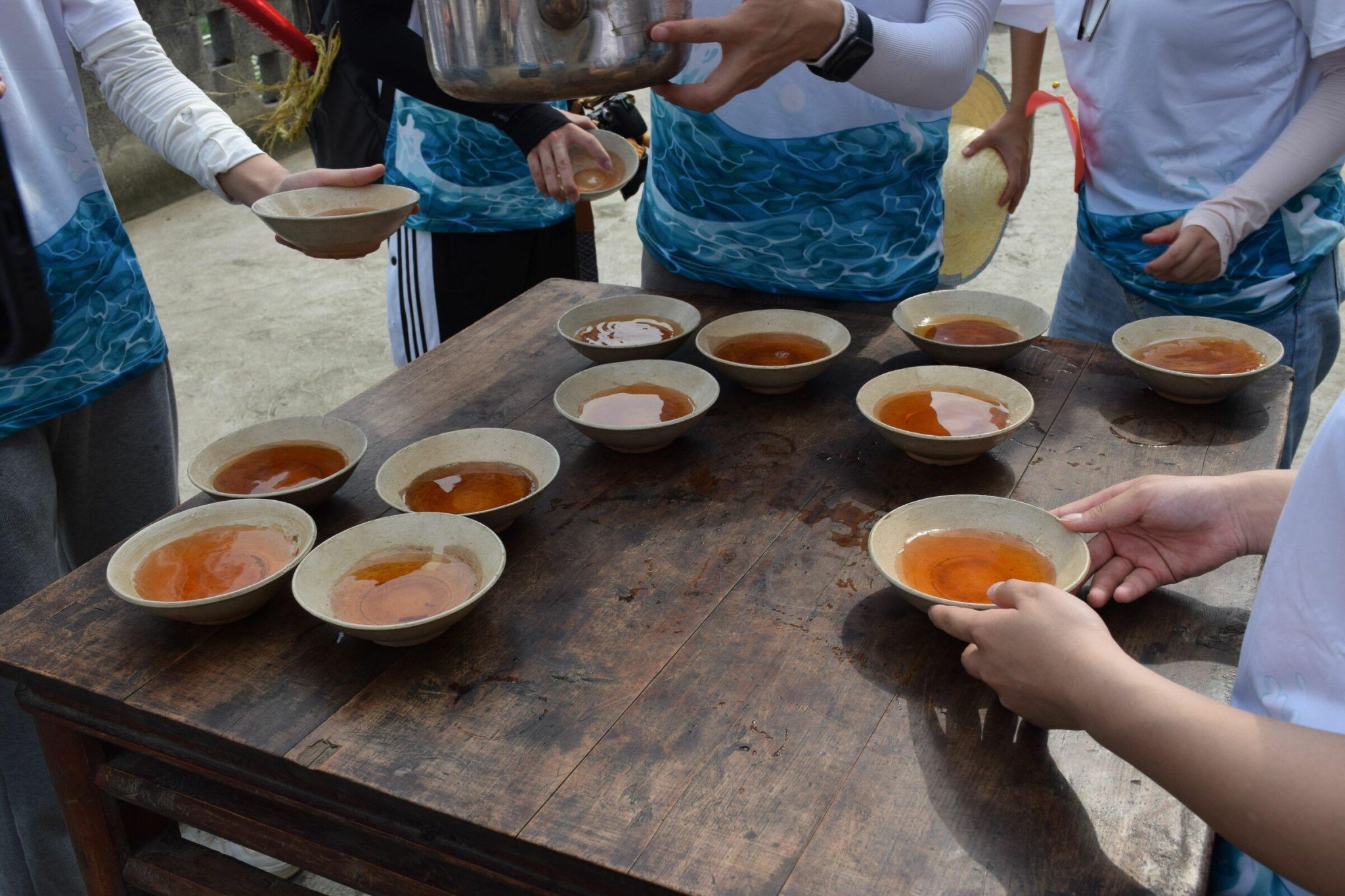 在何书记的带领下,途中我们来到了一户农家喝到了“红军茶”,红军茶其实原名是将军茶,改名为红军茶也是表达了老百姓对红军、对党的认可。其茶色透着红色,茶水倒在土瓷碗中时,仿佛把志愿者们拉到了那个时代。