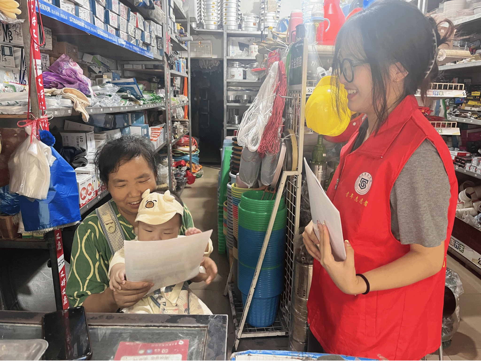 随后志愿者们来到小超市,向超市老板询问这三年疫情的切身体会,老板描述道,自从疫情爆发后,断断续续的封控导致最近两年的生意都不尽人意,今年开放后,生意才慢慢好起来。疫情对中华村的经济有一定的影响。