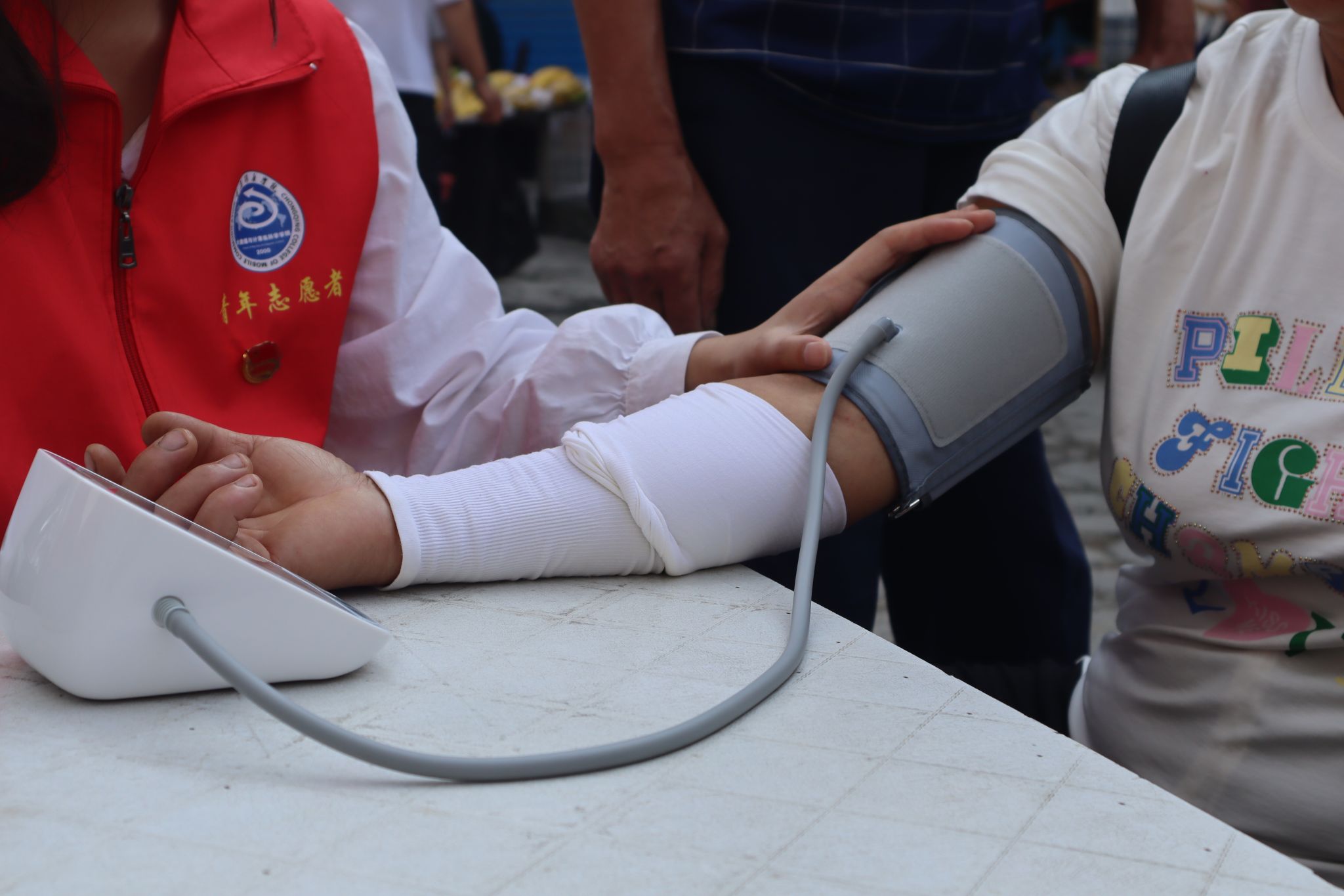 健康问题一直是人们谈论中不可避免的一个问题,特别是在医疗条件不发达的村镇里面。面对这个问题,志愿者们在羊角村街道上搭建了一个免费测血压的平台,面向街道上的老年群体免费测血压。值得高兴的是,很多老年人的血压值大多是在正常范围内,同时对有高血压的人群,志愿者们会给出一些在饮食健康,日常生活方面的建议。通过这次活动不仅让村民们对自己的身体有了更好的了解,也让他们提高了反诈意识,但更重要的是让参加社会实践的大学生们增长知识、锻炼才干,也增加了个人的社会责任感和历史使命感。