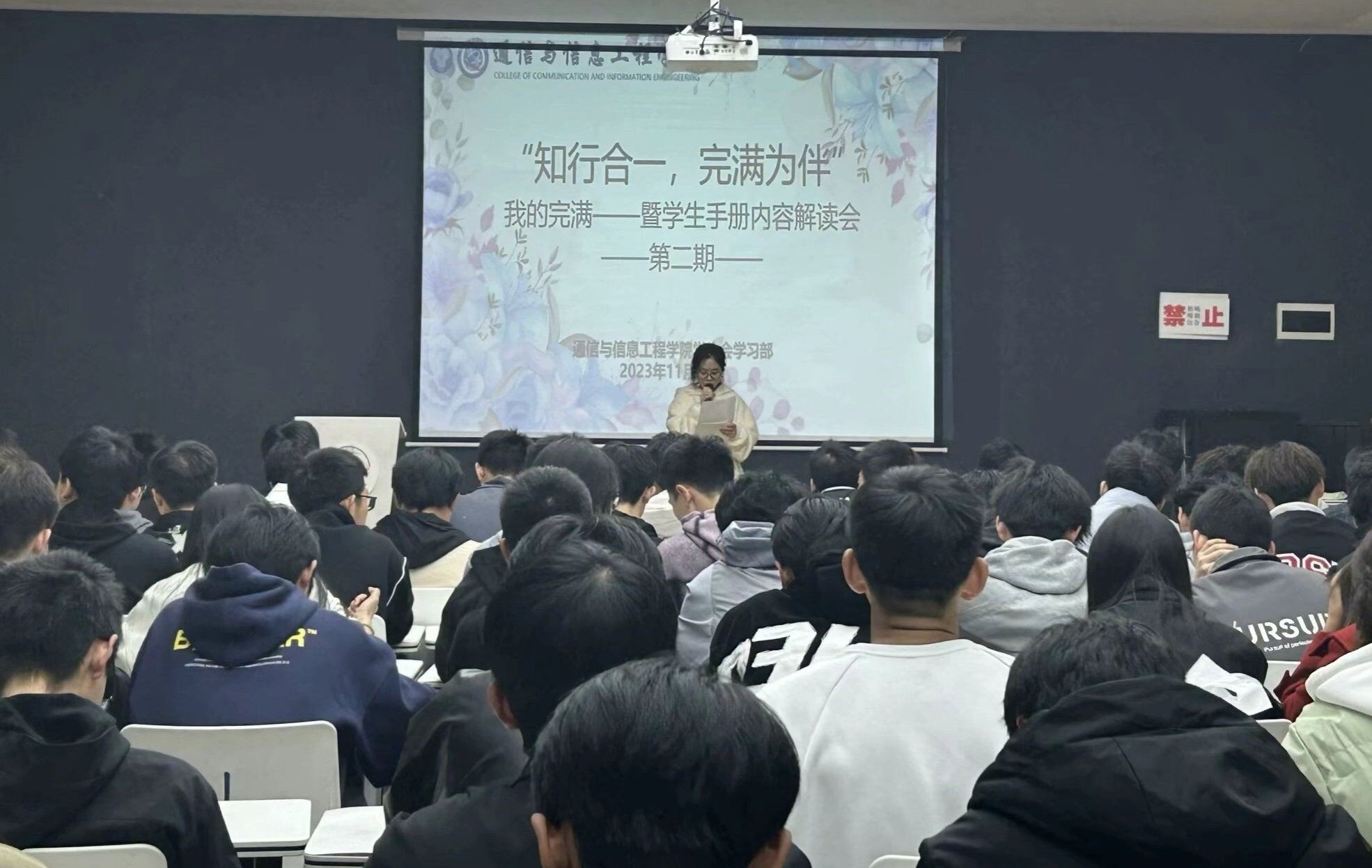 此次“知行合一,完满为伴” 我的完满暨学生手册内容解读会的成功举办,不仅为新学子提供了一次深入了解学校的难得机会,也激励学生积极参与学府规章制度的学习与实践,为学生们在学校规章制度的学习和实践方面奠定了坚实的基础。培养了学生们的自我规范意识。通信与信息工程学院将持续努力,为学生提供更多精彩的教育活动和学习机会,为学院的蓬勃发展贡献更多力量将持续努力,为学生提供更多精彩的教育活动和学习机会。