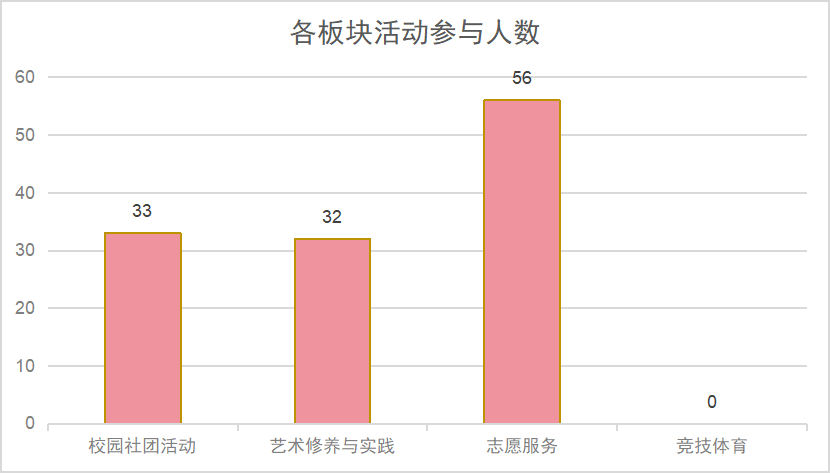 分析完满教育数据,可为组织者提供改进的方向,从本月完满教育活动数据看来,竞技体育板块的参与人数较少,在下一个月,将改进相应方案、激发同学的热情,让同学们运动起来,让学生在完满教育各个板块全面发展。