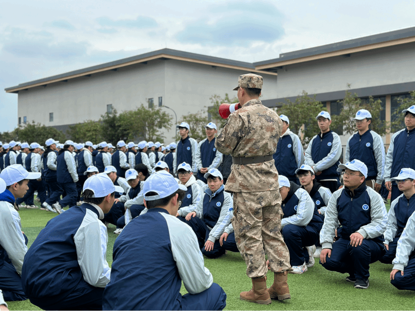 与此同时,教官们也在训练场上展现出了严格的训练态度和亲切的关怀。他们会耐心指导学员完成跨立、坐下、蹲下等口令动作,大家认真谨慎,力求动作规范、严谨。