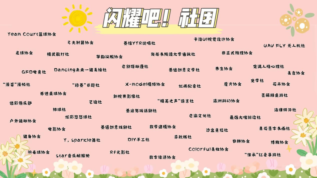 2023社团文化艺术节作为学生社团的活动盛宴,汇聚社团特色,历时4个月,19个社团专场活动,累计参与人数8000+。用躁动与社团共振,用热情与浪漫联动,“∞无限次,爱社团”社团文化艺术节闭幕式暨文艺汇演更是点燃星夜,当晚现场参与人数更是突破6000+,亮亮的社团名片,由你来打响!