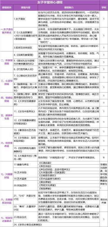 第九季女生学堂将围绕当代女大学生关注的发展问题,邀请校内校外专家从形象塑造、心灵绽放、情感经营等方面为我校女生开展课程,实现课堂模块化。同时结合公益项目、传统文化实践、奢侈品鉴赏,大咖阅读计划等多维度开展系统化课程