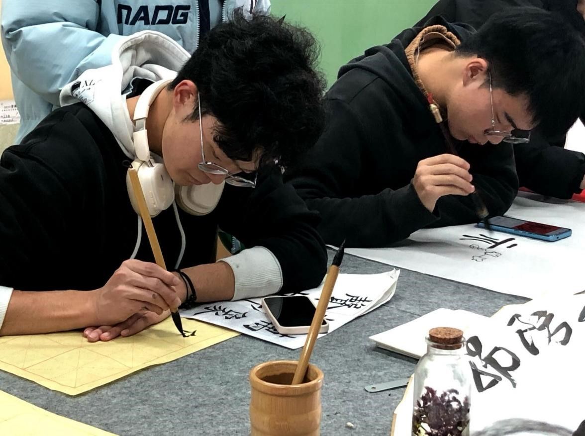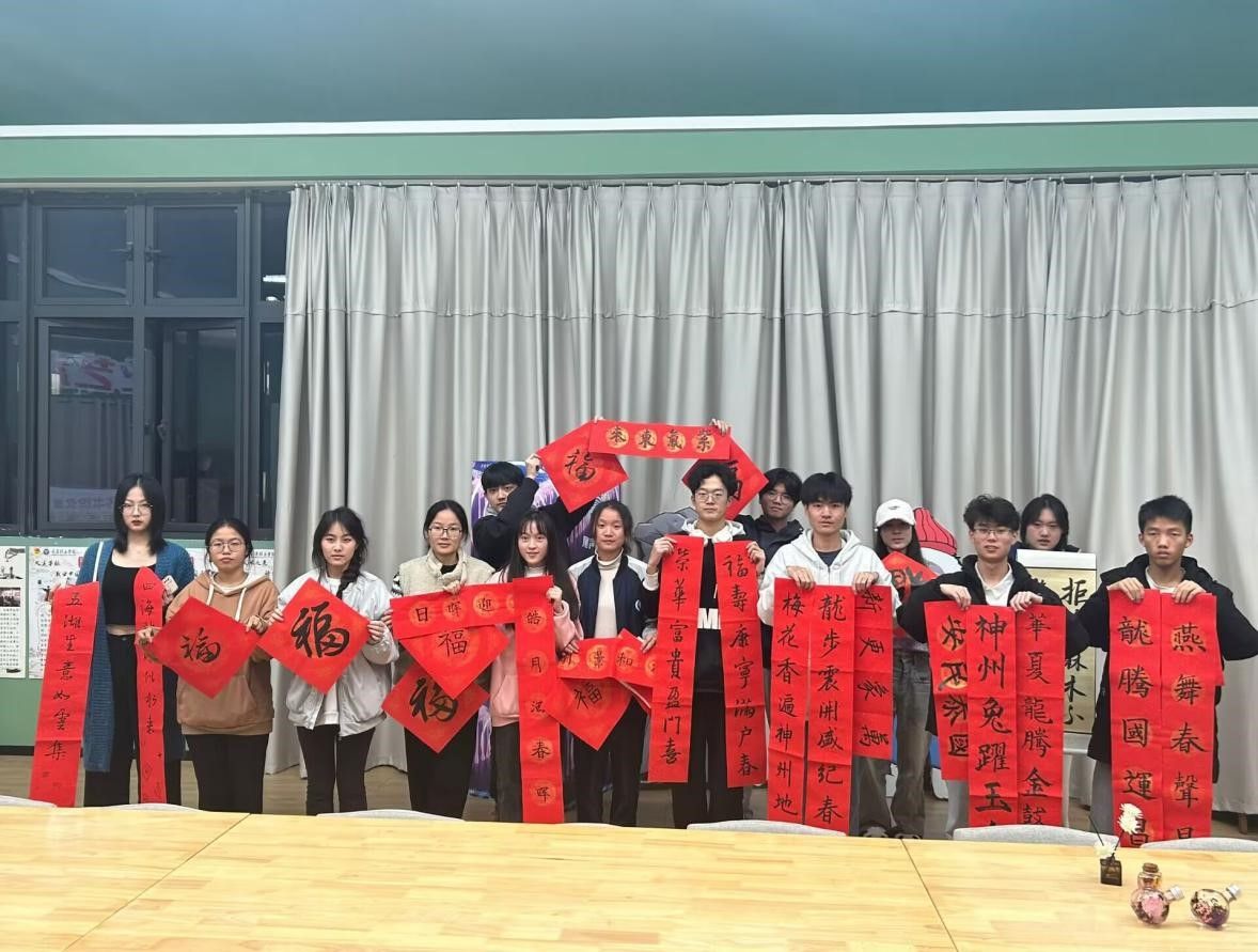 在中国春节期间,人们常常在门框上悬挂春联,来表达对新一年的期望和祝福。春联往往采用富有诗意和寓意的语言,比如“福满门楣”,“喜迎新春”等等,这些词汇传递了中国人民对生活的向往和对未来的信心。春联文化代表着中国人民的美好祝愿,故活动一经发布时,就吸引了一批又一批的同学前来参与。