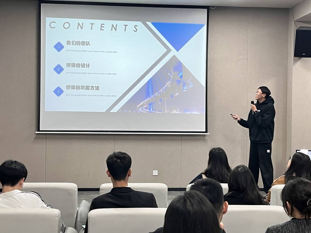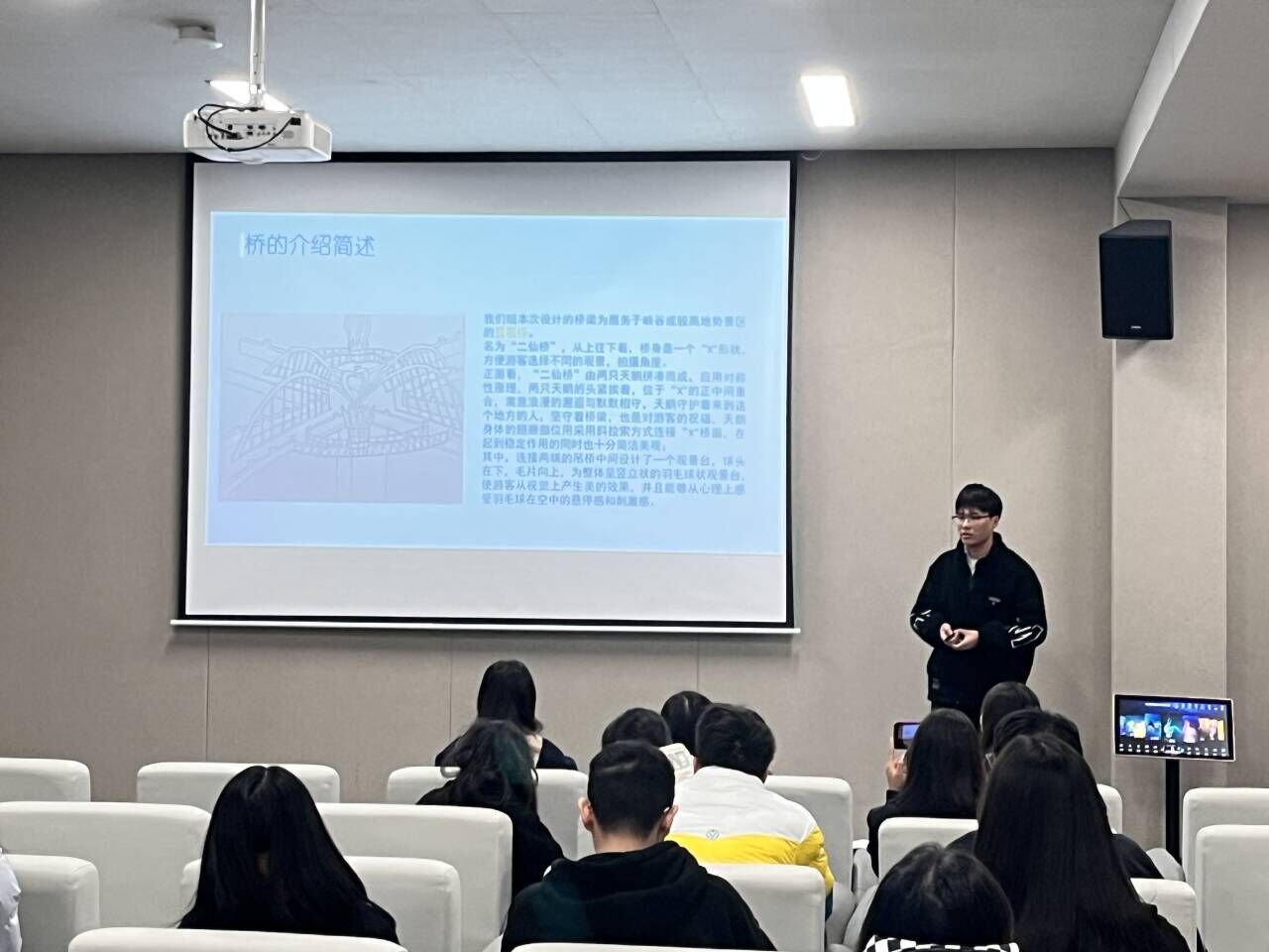 本次比赛以“创新设计桥梁”为主题,吸引一众来自各学院各专业的优秀团队共同参与,虽然他们的专业背景各异,但都为了同一个目标齐聚一堂:设计出一座兼具科学性、创新性、前沿性和应用价值的桥梁。在答辩环节中,参赛队伍分别从初建模型的选址过程、构建思路、受力分析以及建模等多个方面进行讲解。选手们充分利用了多媒体手段,包括PPT、视频等多种方式,全方位地展示了他们对于桥梁设计的理解和创新。