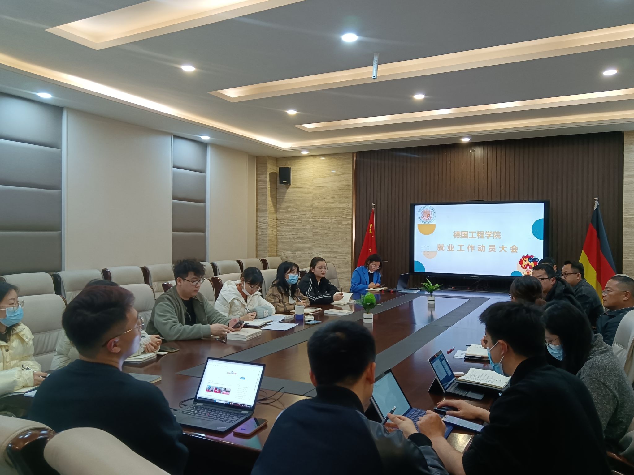 德国工程学院就业形势分析及就业动员大会,于12月11日下午14:30在德工会议室举行。重庆移通学院校长助理尹浩亮、德国工程学院副院长侯宇晶、副院长李伟光参与本次会议,与学院各教师代表共同进行24届毕业生就业工作形势分析和动员。