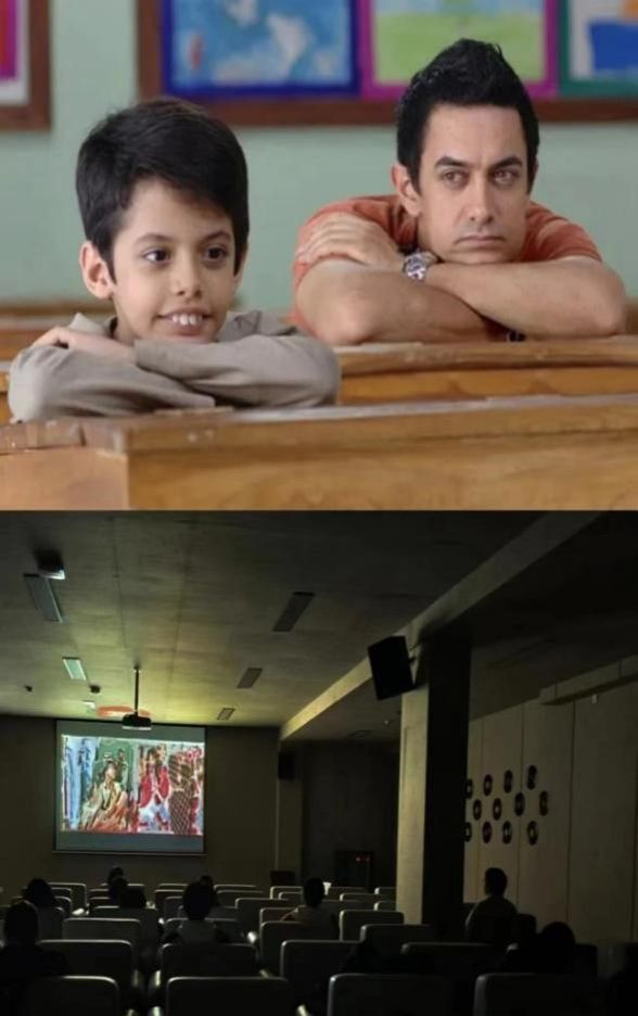 能遇见一位善于发现美、传递美的老师是每个人学生时代的一大幸事。电影《地球上的星星》便讲述了被误解的天才少年在美术老师尼克的帮助下逐步成长,最后得到大众认可的故事。银幕内的故事渗透进了银幕外同学们的眼里,大家的思绪不经意间被带回了自己参加电影美育志愿者活动中,在活动中大家不再是等待着被传输知识的学生,而是带小朋友们发现电影之美的老师。