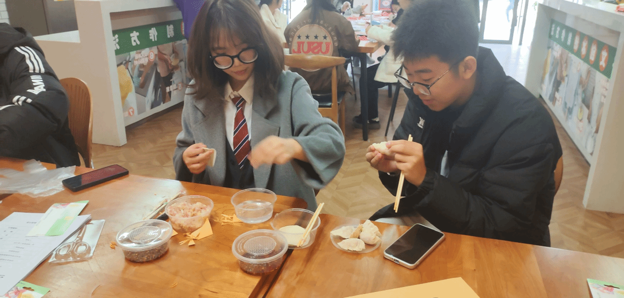 在活动的最后许多完成剪纸的同学也相继完成了包饺子的任务,由参赛选手投票选出最具完满奖,最佳创意奖,最佳美味奖,最佳参与奖。随后将同学们包的饺子下锅蒸煮,大家再相聚一起品尝的那一刻,同学们都露出了开心的笑颜,欣赏着优秀作品,品尝自己的“手艺”,其乐融融聚在一起,欢度冬至。
