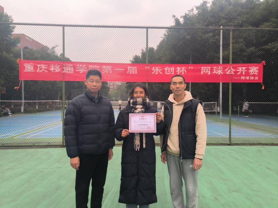 重庆移通学院何磊同学、重庆对外经贸学院张丽同学分别取得了男、女单打第一的优异成绩,来自竞技体育中心的刘玉林主任以及网球协会指导老师任德利为获得优异成绩的同学授以荣誉。相信同学们会继续在网球场挥洒汗水、收获荣誉,让网球成为展现自我、成就自我的独特载体。