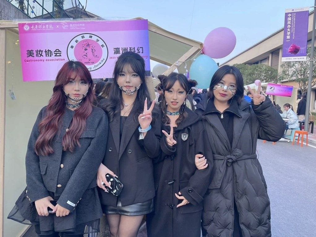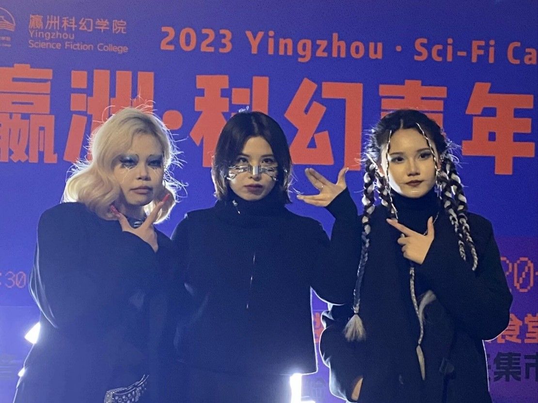 硬核造型,炫酷妆容,霓虹灯光,在本次嘉年华里有每一个科幻爱好者都梦寐以求的奇妙体验。我校专业团队Colorful美妆协会为每一个到来的“时空穿越者”独家打造专属科幻妆容和造型,穿戴上各类科幻元素的饰品,进入这场充满梦想与创意的科幻盛宴。团队里每一位成员盛装打扮,在霓虹的灯光下强大的气场镇煞旁人,途径的同学们都被吸引了目光。