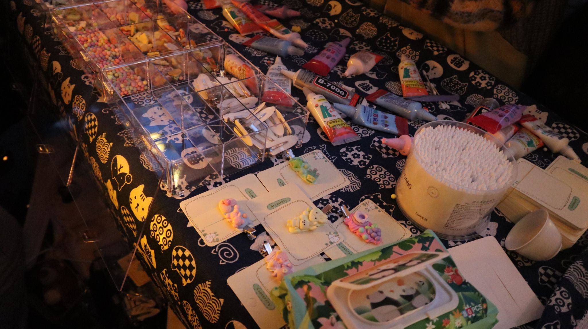 每个作品未必出类拔萃,但一定与众不同。经过一段时间的创作,一件件精美、独一无二的奶油胶DIY手作作品呈现在大家面前。参与者们利用丰富多样的彩色奶油胶,创造出了各种形状、图案和装饰品。工作人员将参与者的奶油胶作品放在盒子里,以便晾干。晾干后,工作人员将优秀作品放在展示架上向全校师生展示一件件绚丽多彩的作品。