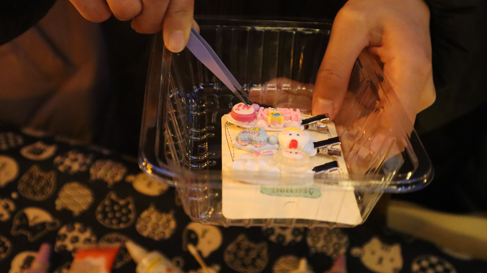 用时间感受世间美好的事物,把生命中的一段时光物化成同学们在这个世界上独一无二的“艺术品”。手工DIY是起源于西方二十世纪六十年代的概念,现在是一项目前大热的一种解压方式。此活动可以让当代女大学生“静”下来,完全沉浸在自己的DIY世界里,享受独自制作“艺术品”的时光,在奶油胶DIY中缓解学业、工作等带来的疲惫与烦恼。在活动开始之前,工作人员简单介绍了奶油胶DIY的材料与制作步骤,为参与者示范如何制作奶油胶发夹后,工作人员便将奶油胶DIY材料分发给参与者。